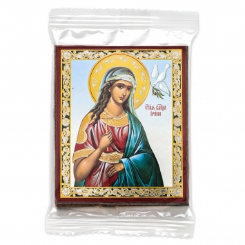 Икона на деревянном планшете 6х9 двойное тиснение, аннотация, упаковка Ирина Македонская, вмц. (7)
