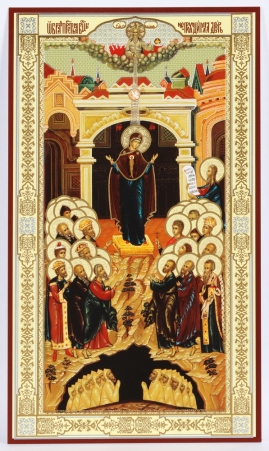Икона на оргалите №1 11х13 двойное тиснение Покров (поясной)