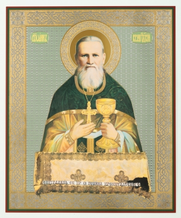 Икона на оргалите №1 30х40 двойное тиснение Иоанн Кронштадтский