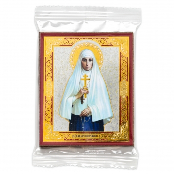 Икона на деревянном планшете 6х9 двойное тиснение, аннотация, упаковка Елисавета Алапаевская, вел. кн., прмц.