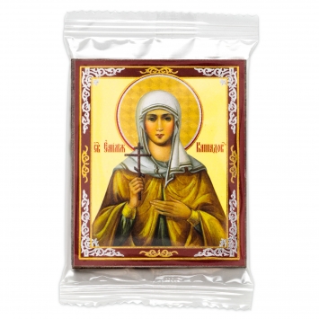 Икона на деревянном планшете 6х9 двойное тиснение, аннотация, упаковка Емилия Каппадокийская, прп.