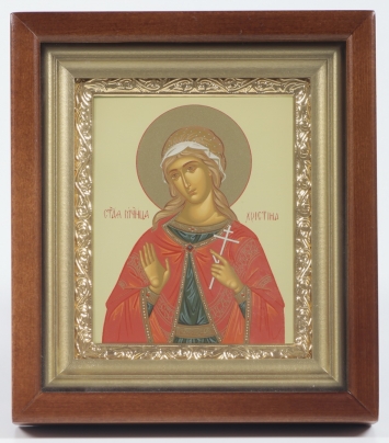 Икона в киоте 11х13 сложный, темпера, рамка золочёная Христина