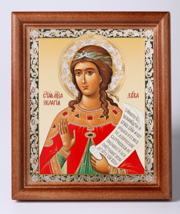 Икона в деревянной рамке 11х13 Набор с Днем Ангела, двойное тиснение Пелагия 3 (Тарсийская)