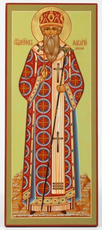 Икона живописная на доске 24х50 масло, золоченый нимб Макарий