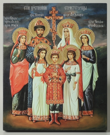 Икона на доске 13х15 объёмная печать, лак Царская семья 1