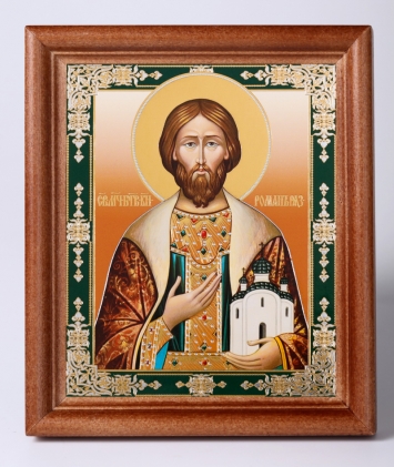 Икона в деревянной рамке 11х13 Набор с Днем Ангела, двойное тиснение Роман Рязанский 2