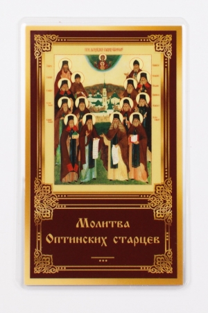 Икона в жесткой ламинации 5х8 с оборотом Собор Оптинских старцев