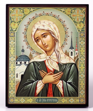Икона на доске 13х15 объёмная печать, лак Ксения Петербургская 3