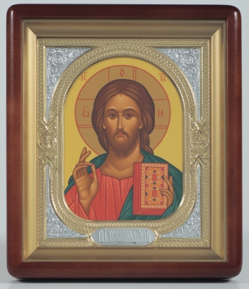 Икона в киоте 18х24 фигурный, темпера, риза-рамка №1 Спаситель