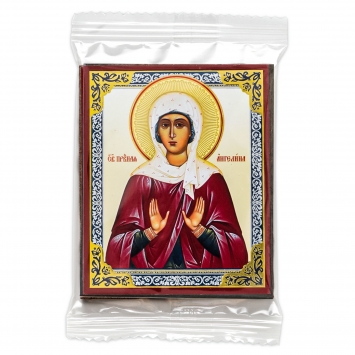 Икона на деревянном планшете 6х9 двойное тиснение, аннотация, упаковка Ангелина Сербская, прав. (3)