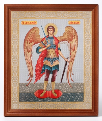 Икона в деревянной рамке №1 18х24 двойное тиснение Михаил Архангел (ростовой)