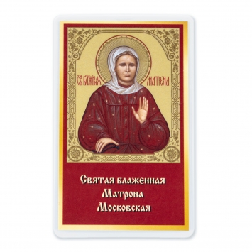 Икона в жесткой ламинации 5х8 с оборотом Матрона Московская (с открытыми глазами)