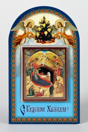 Складни деревянные 12х18 трехстворчатые, тиснение, арочные, в упаковке Рождество Христово 4