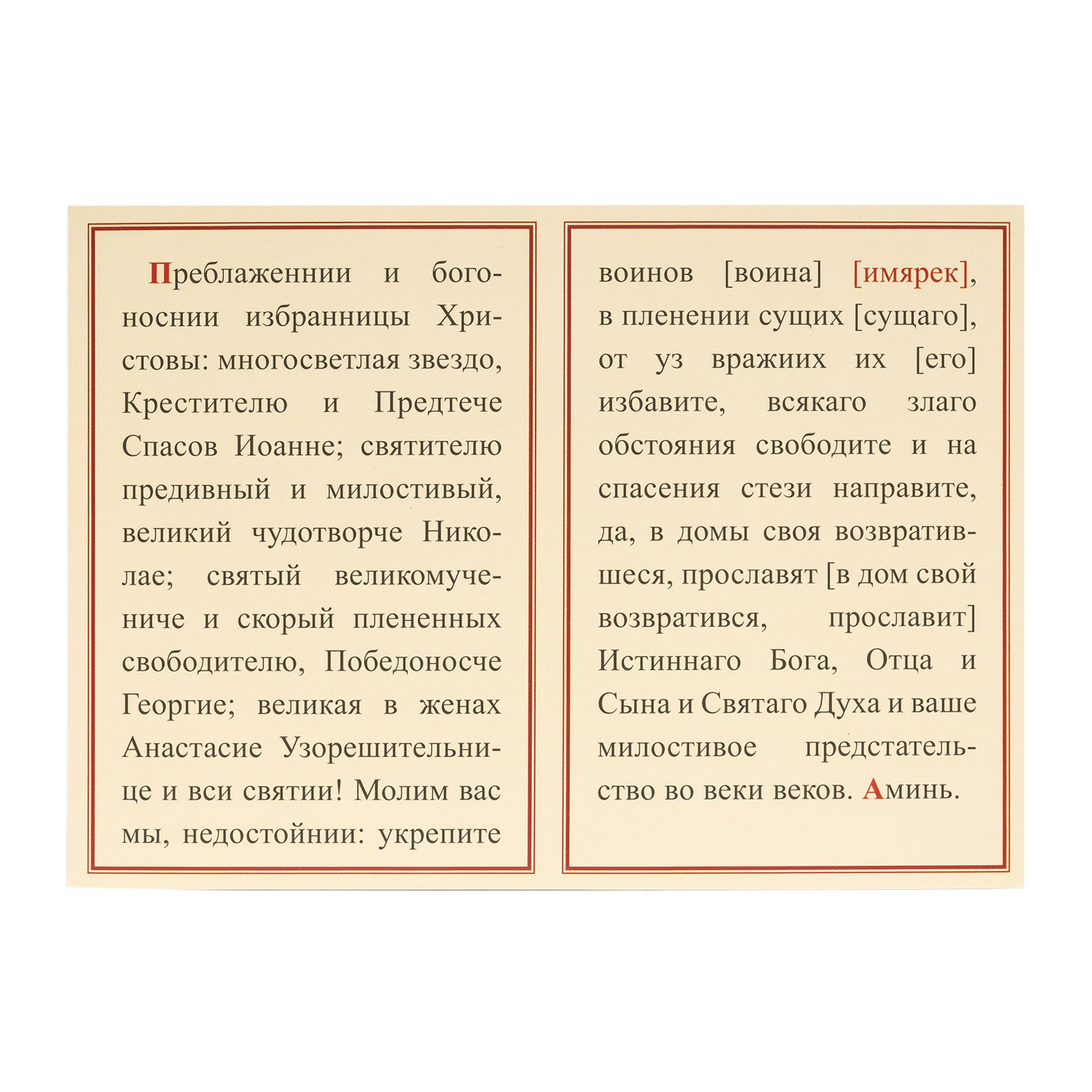 Книжка-складень церковный №7 "Молитва к святым о плененных воинах"