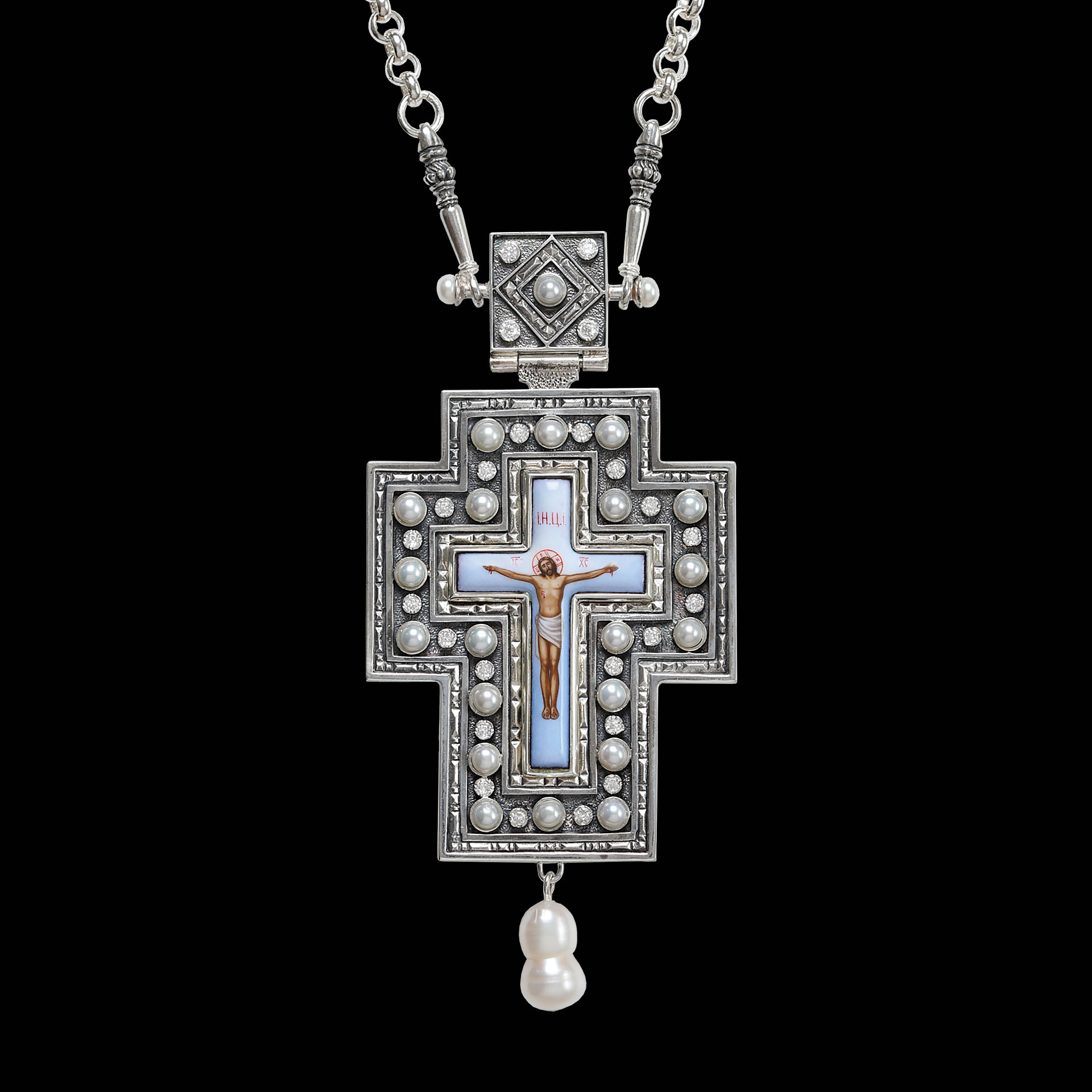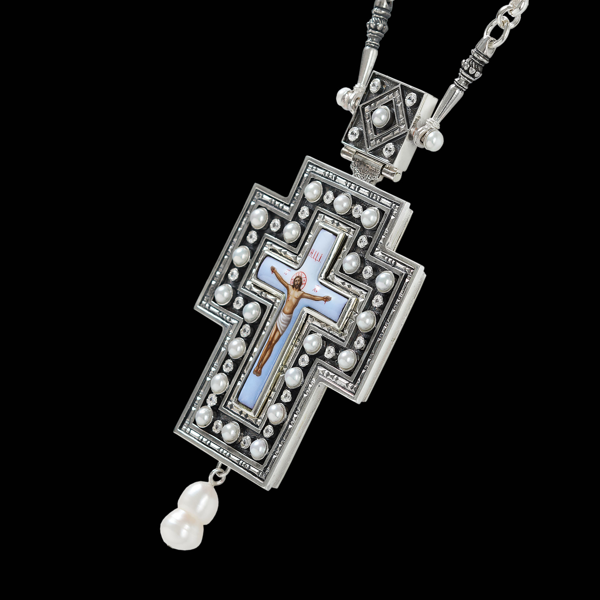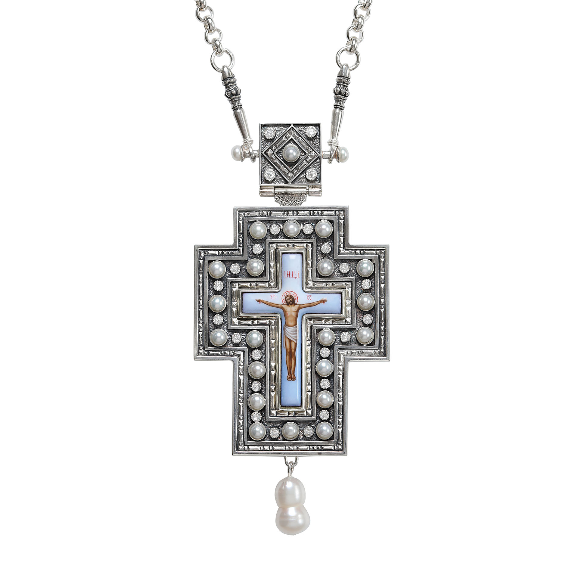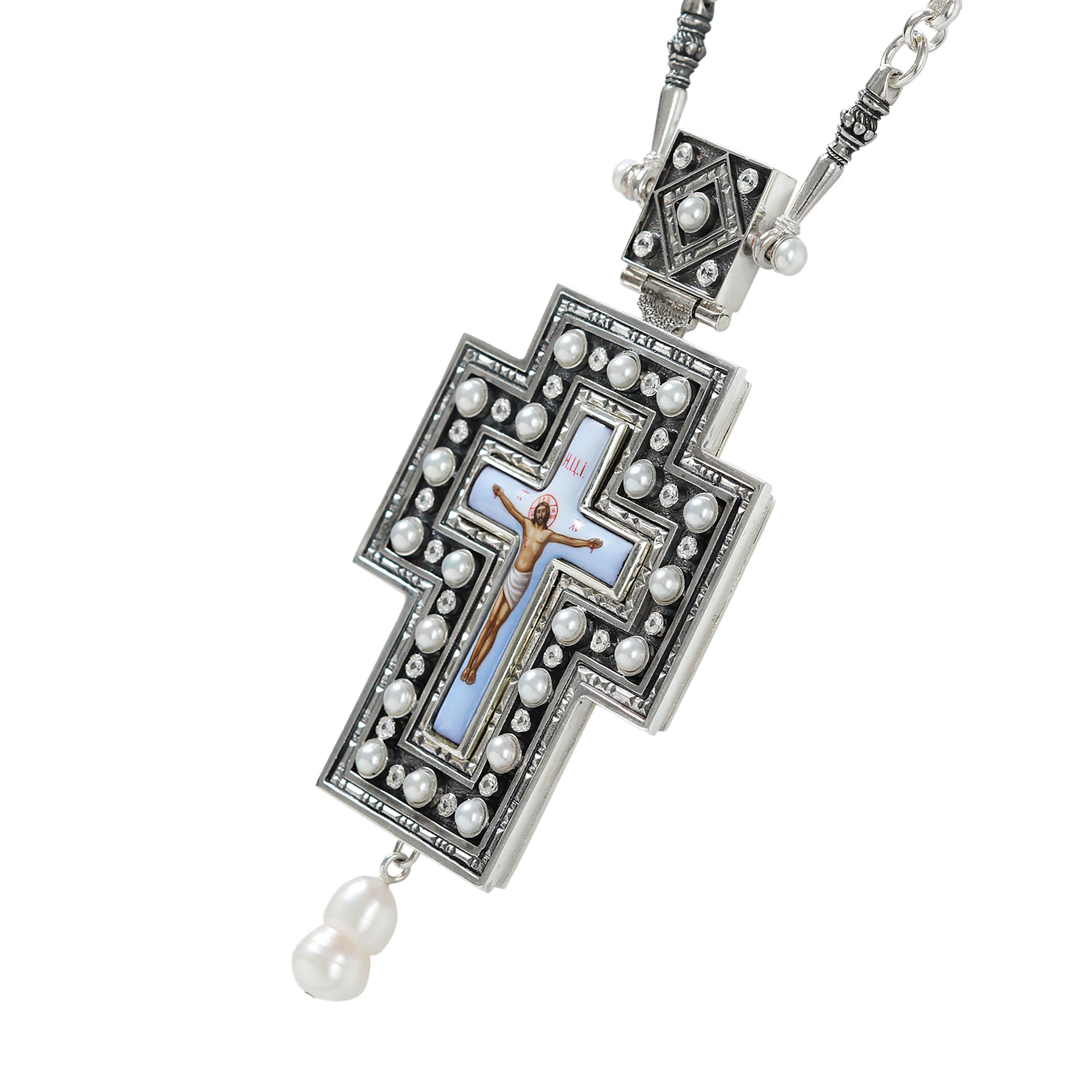 Крест архиерейский №1411 / Фианиты серебро финифть (УИН)