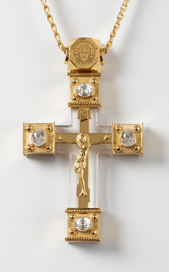 Крест архиерейский №1542 литьевое распятие / золочение / серебро (УИН)