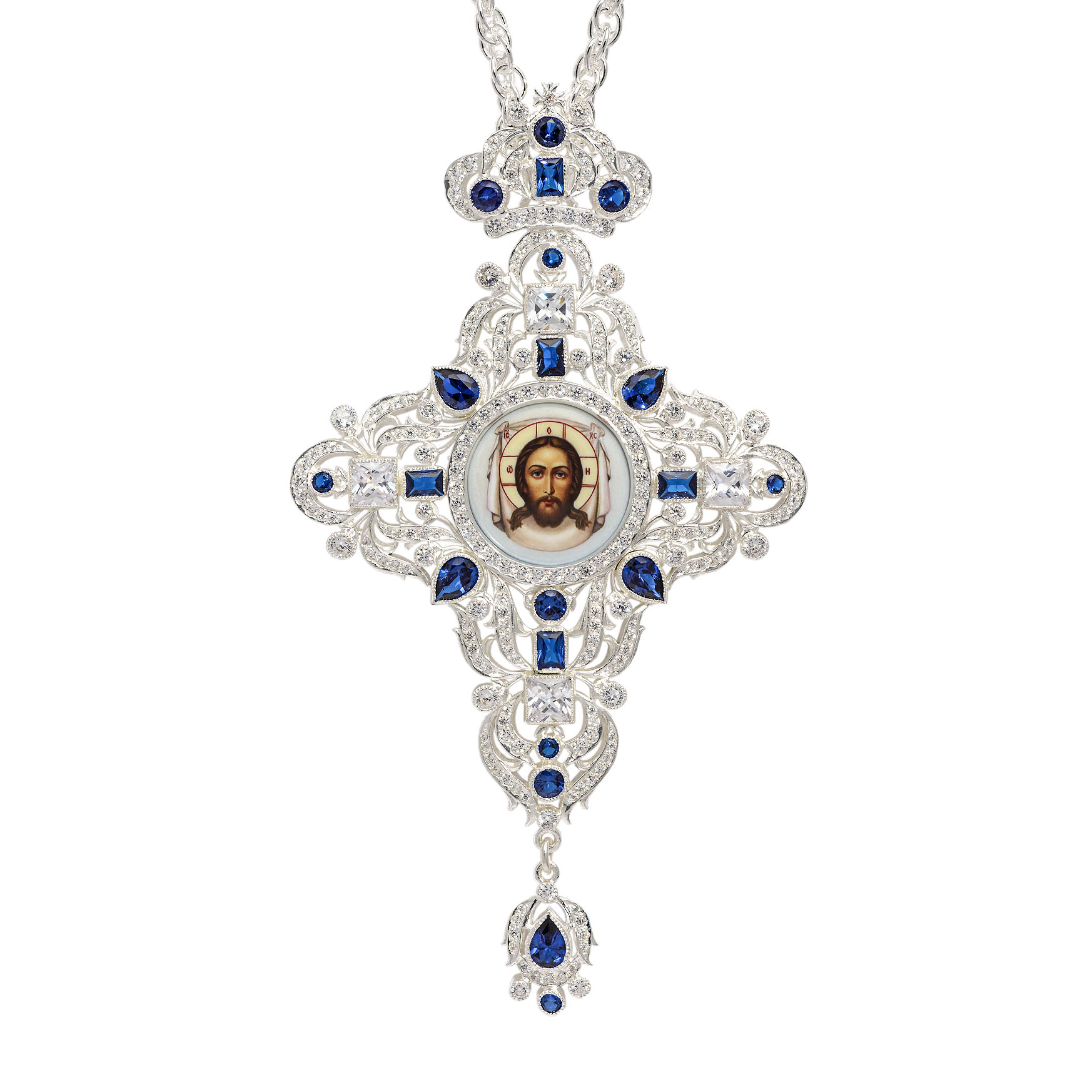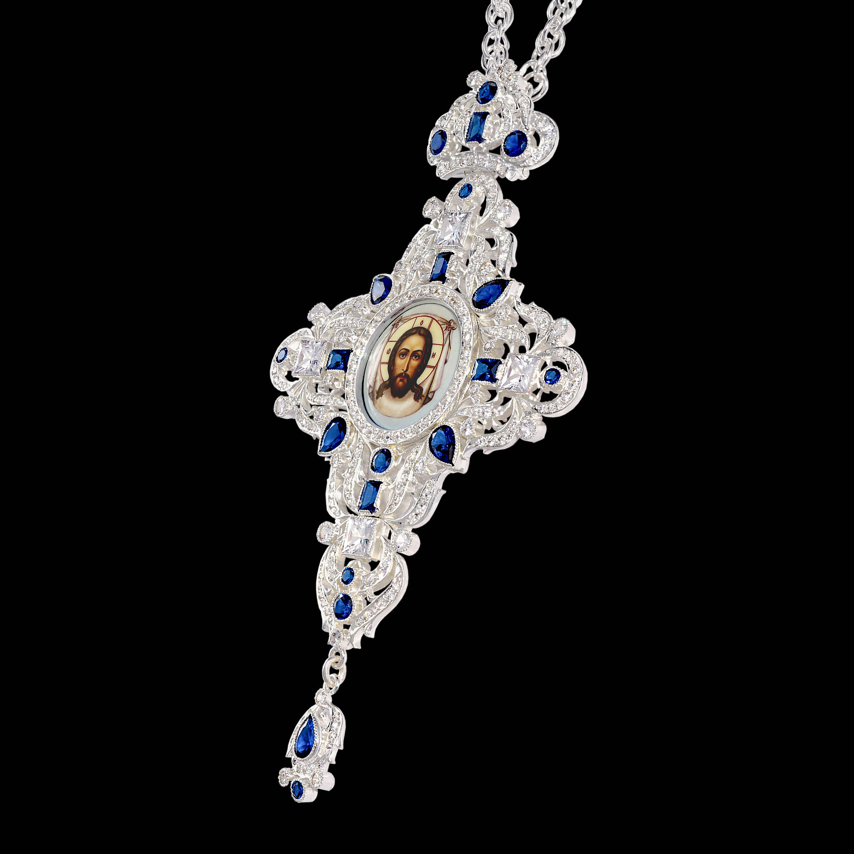 Крест архиерейский №213 / Фианиты деколь / серебрение