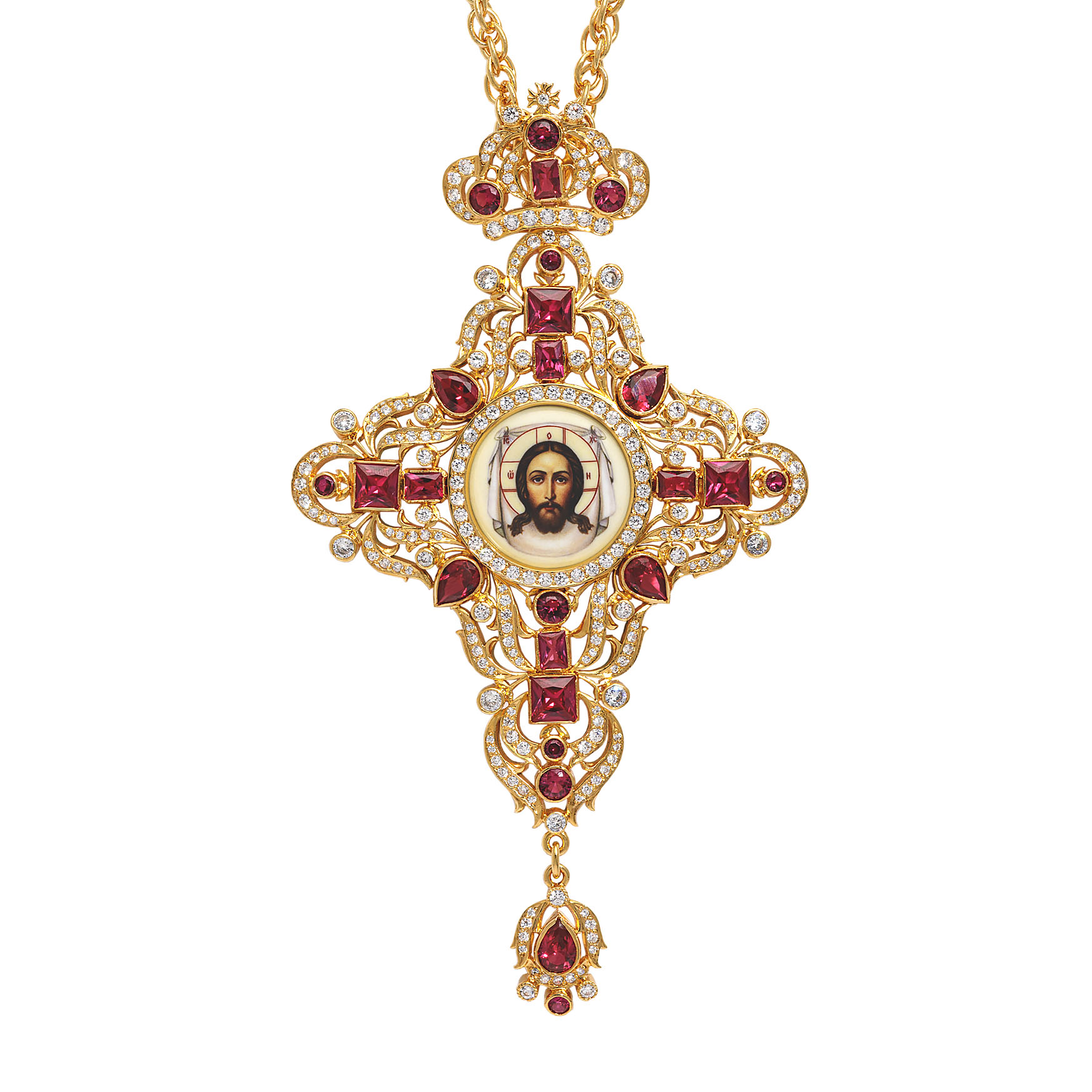 Крест архиерейский №213 / Фианиты деколь / золочение