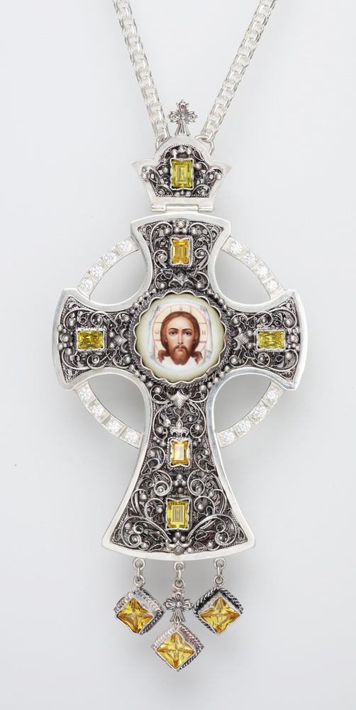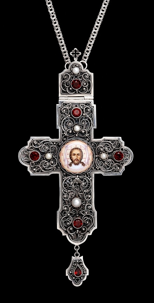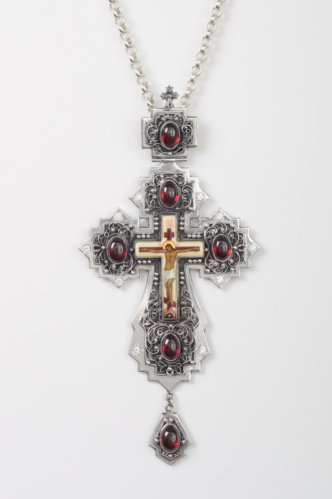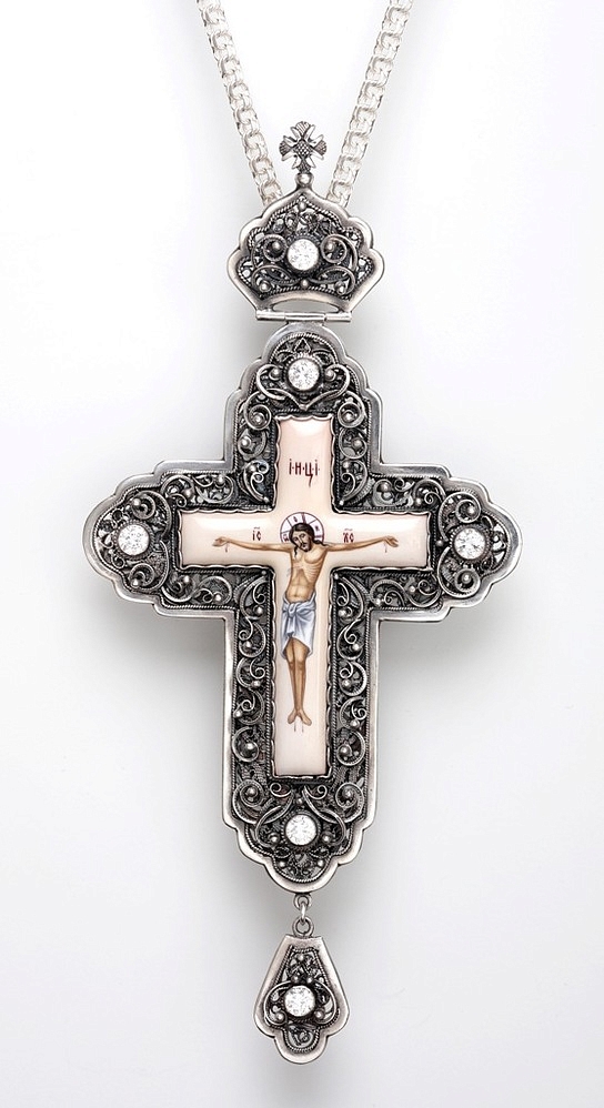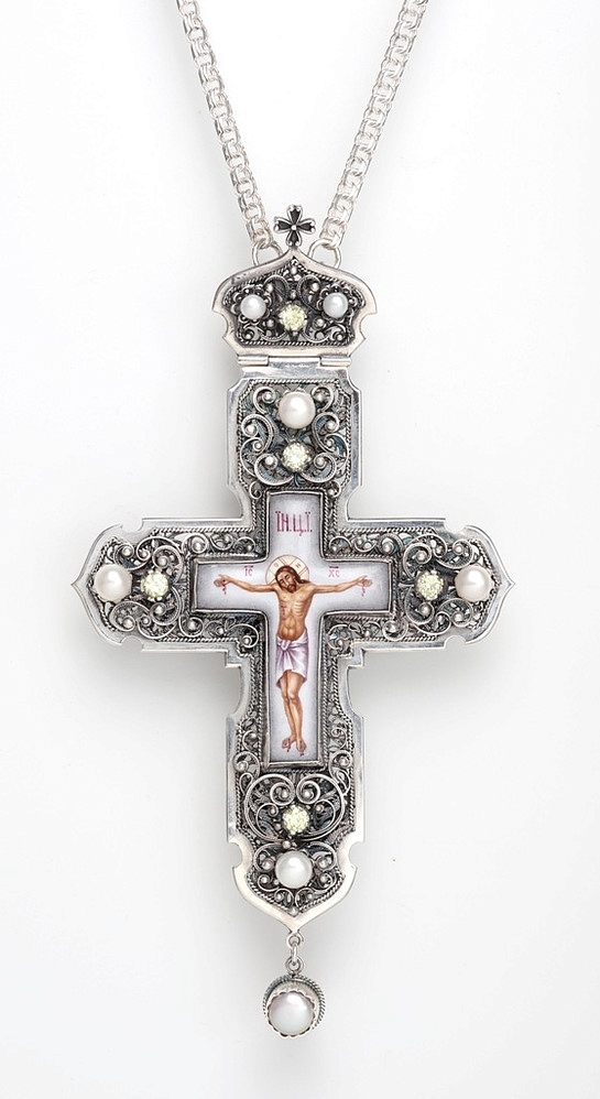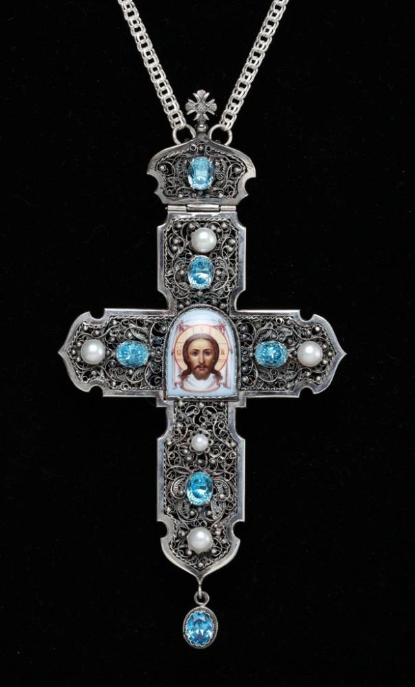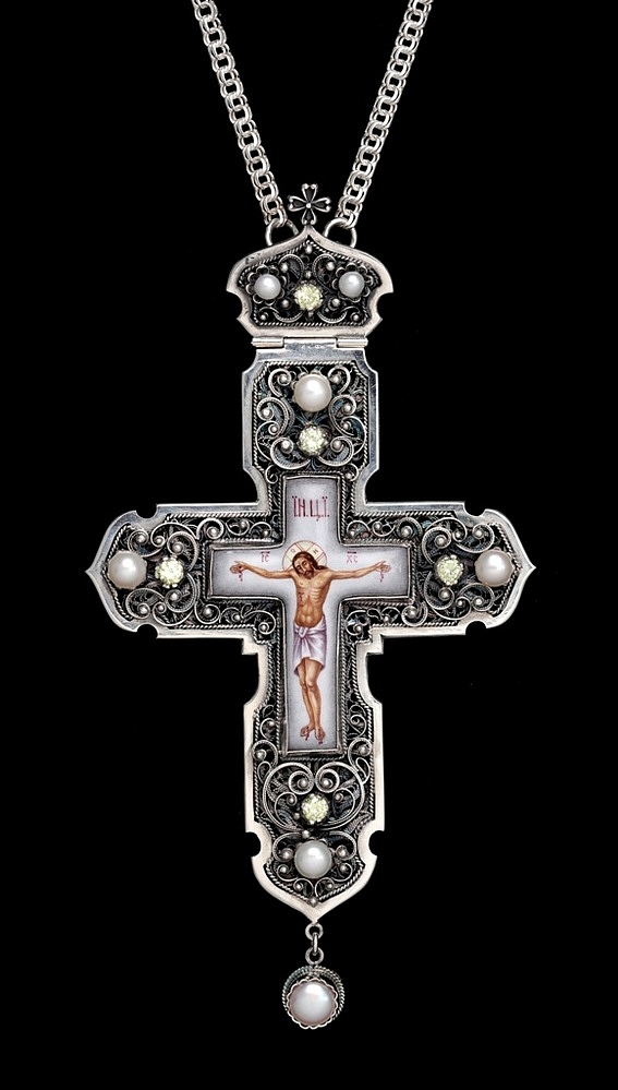 Крест архиерейский филигрань на просвет, финифть серебро (УИН)