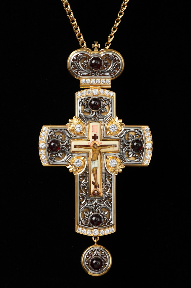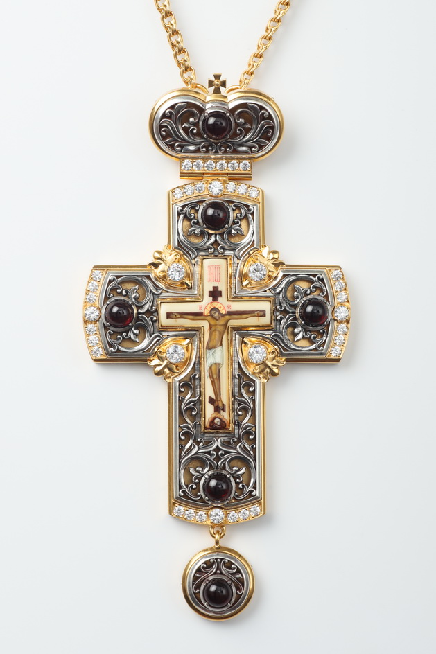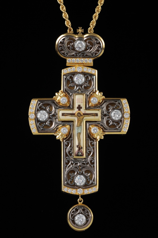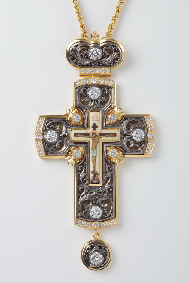 Крест наперсный №107 / Фианиты / золочение / серебро (УИН)