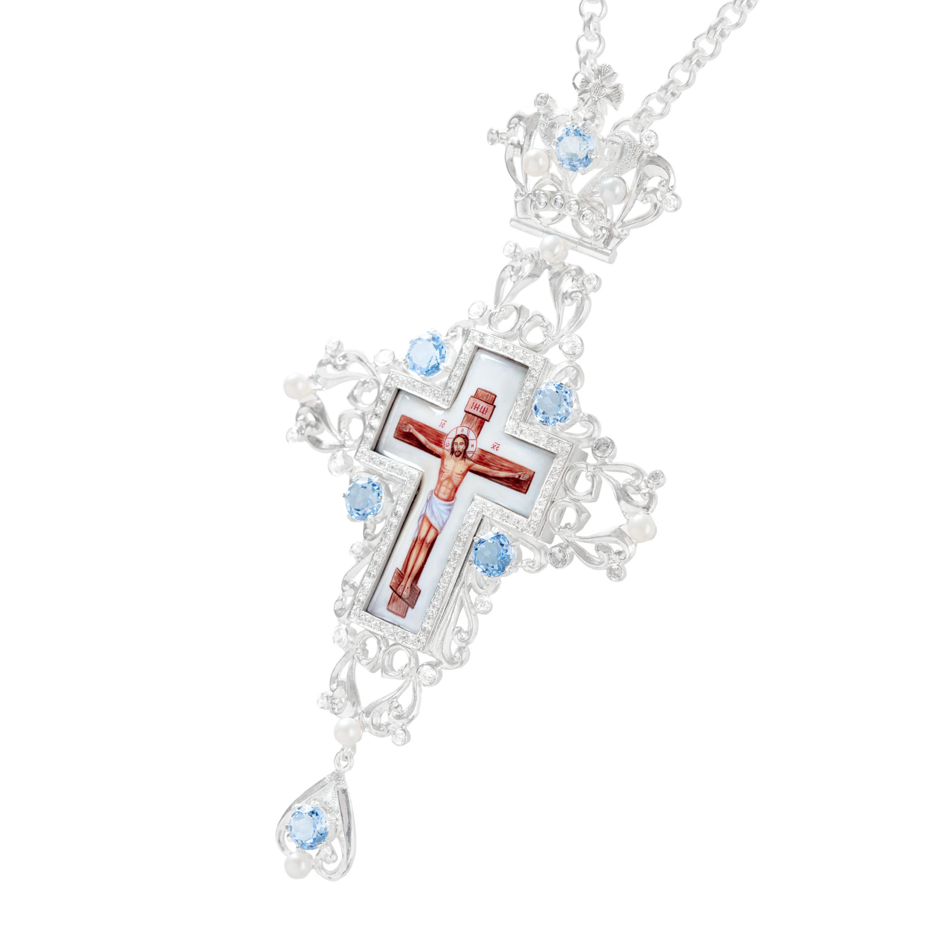 Крест наперсный №1416 / Фианиты / серебрение