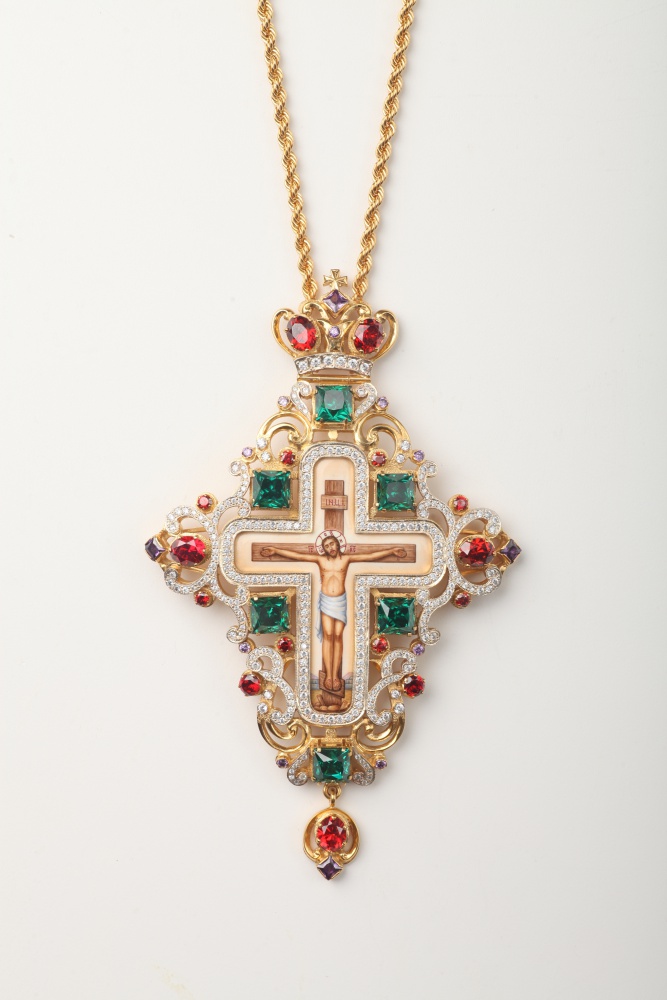 Крест наперсный №1417 / золочение / серебро финифть (УИН)
