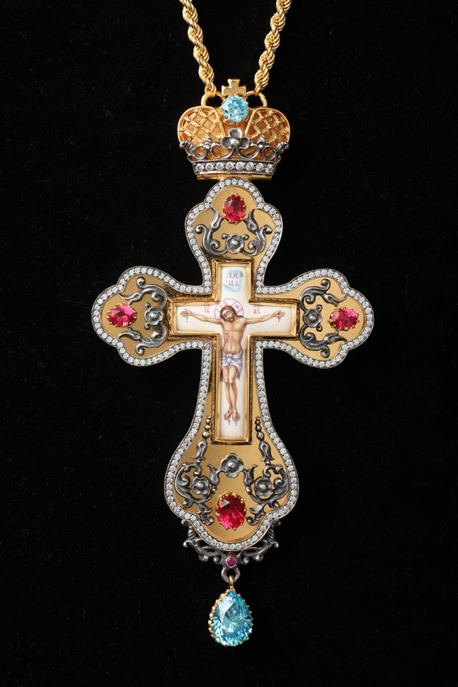 Крест наперсный №1457 / золочение / серебро финифть (УИН)