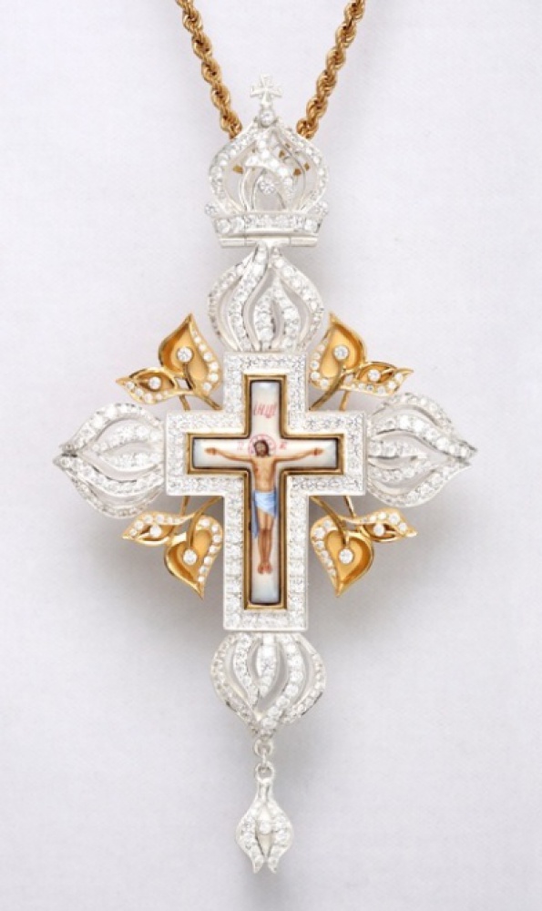 Крест наперсный №1470 / золочение / серебро финифть (УИН)