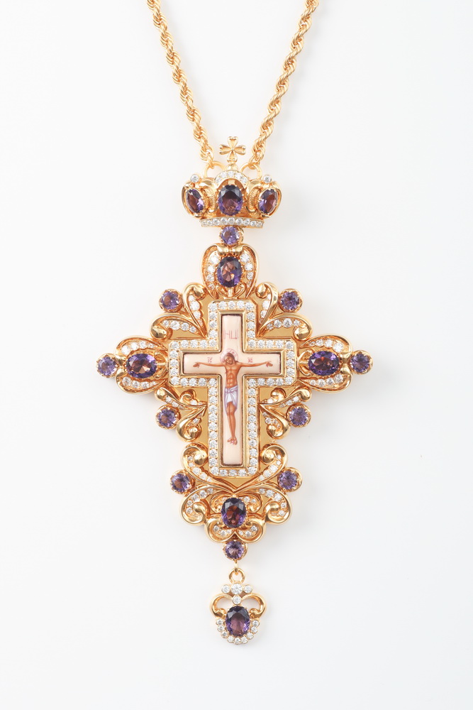 Крест наперсный №1521 / золочение / серебро финифть (УИН)