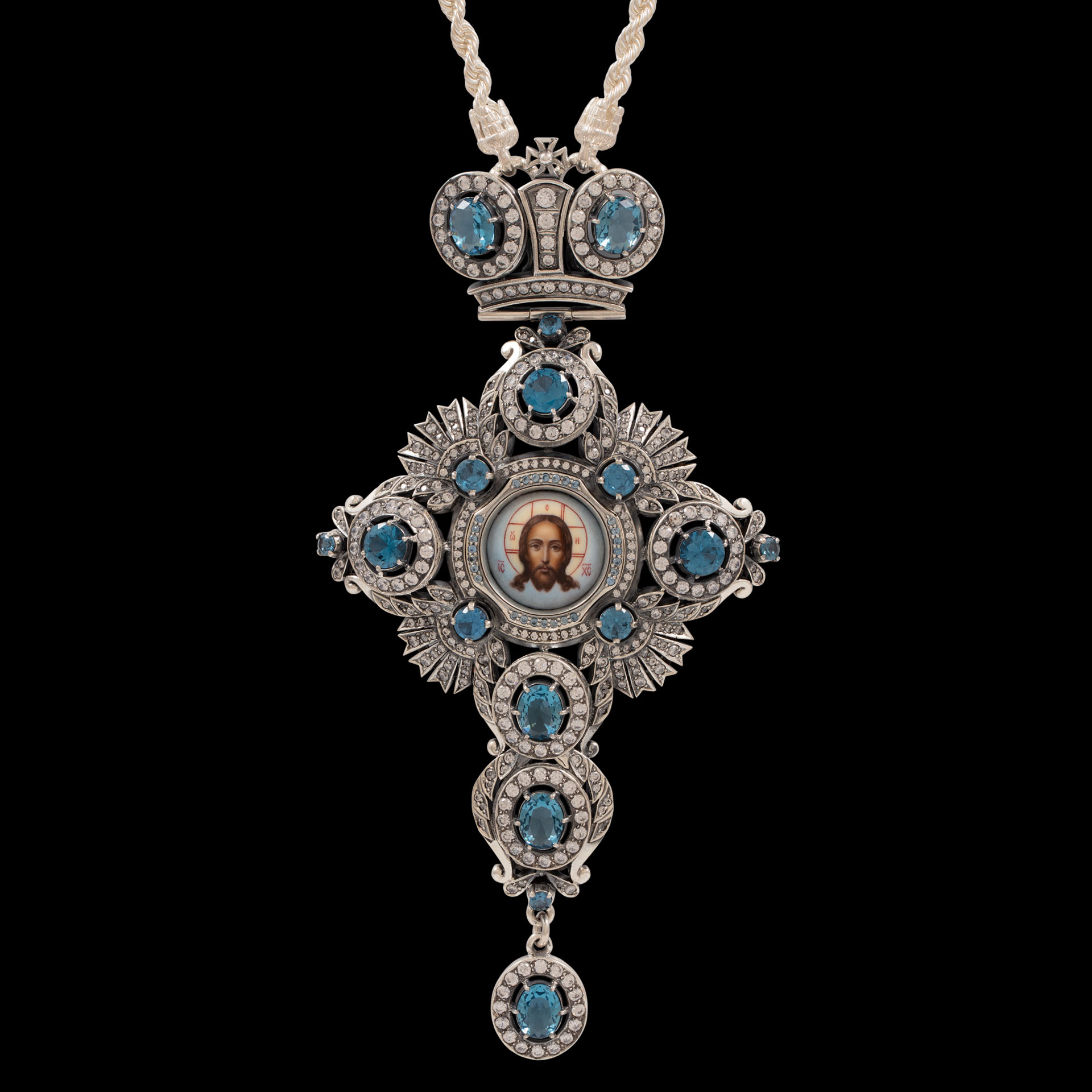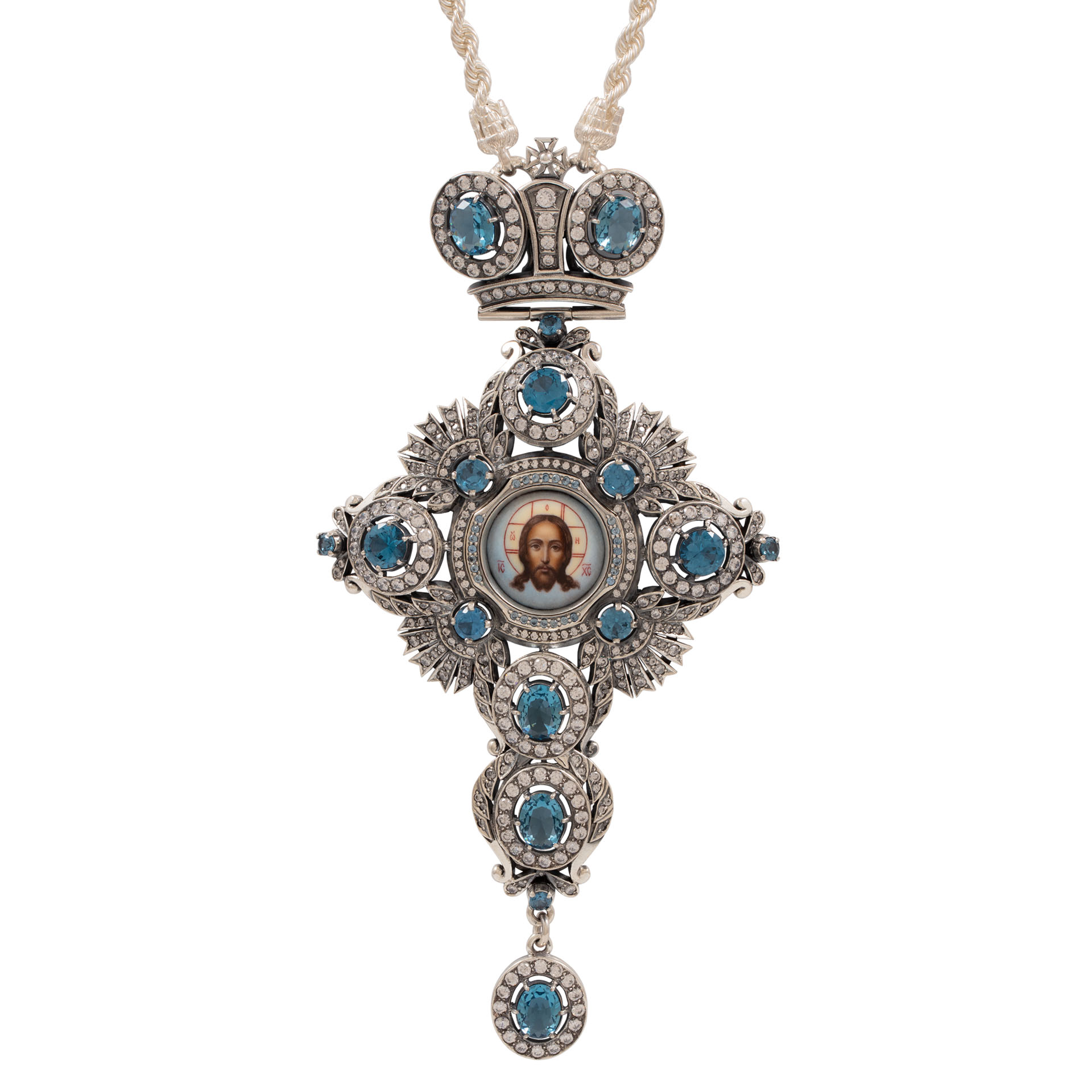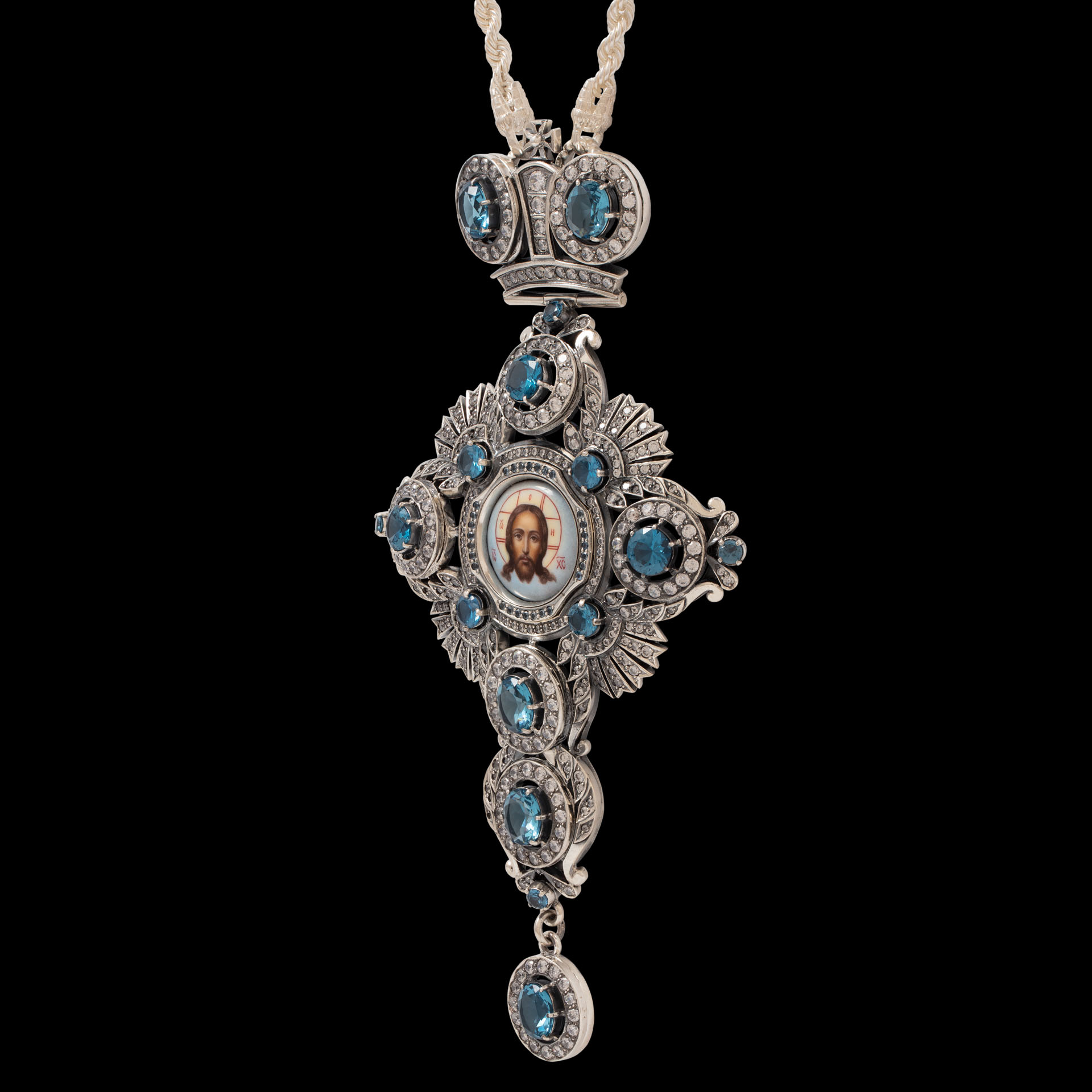 Крест наперсный №1561 / Фианиты финифть серебро (УИН 6432400778226675)