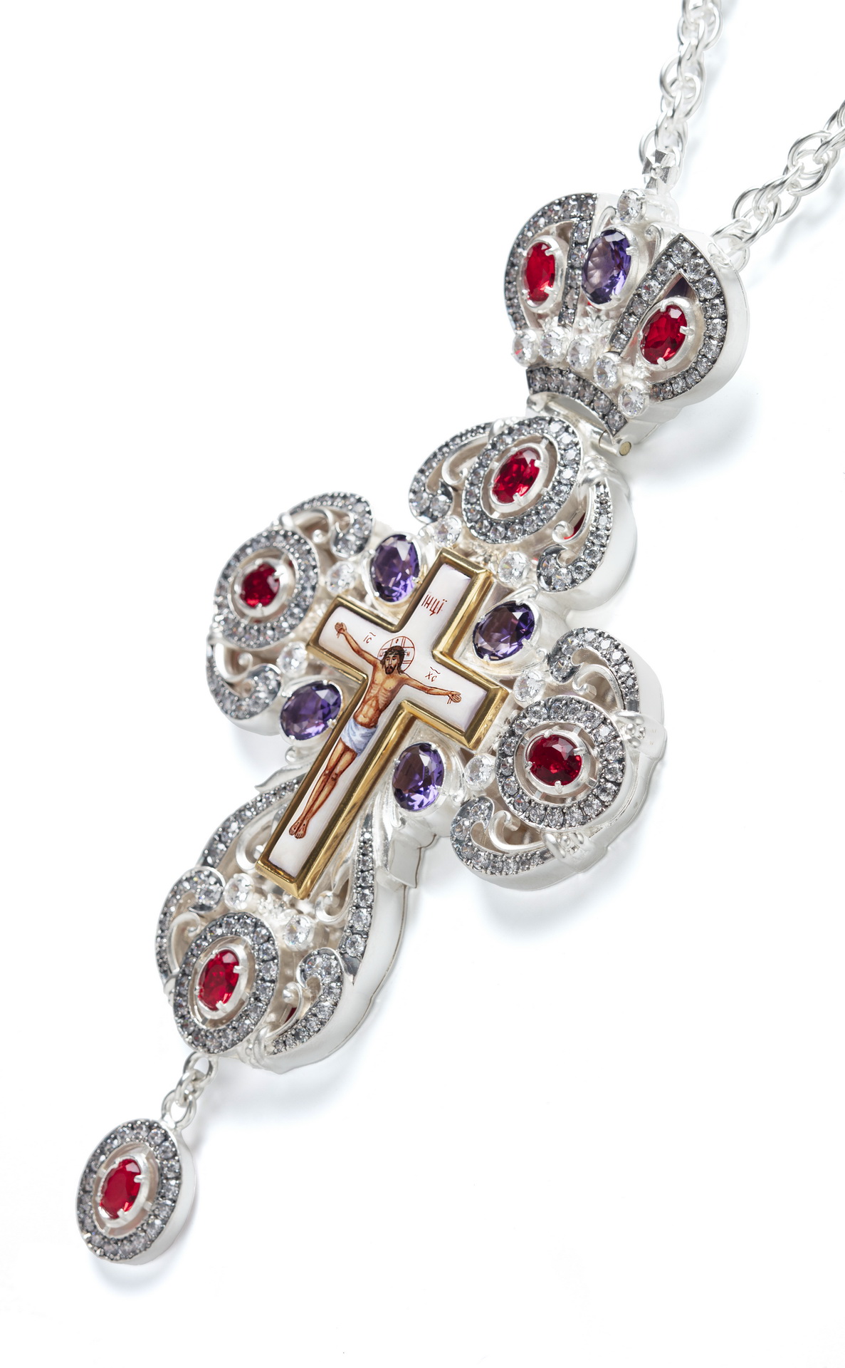 Крест наперсный №158 / Фианиты / серебрение, золочение