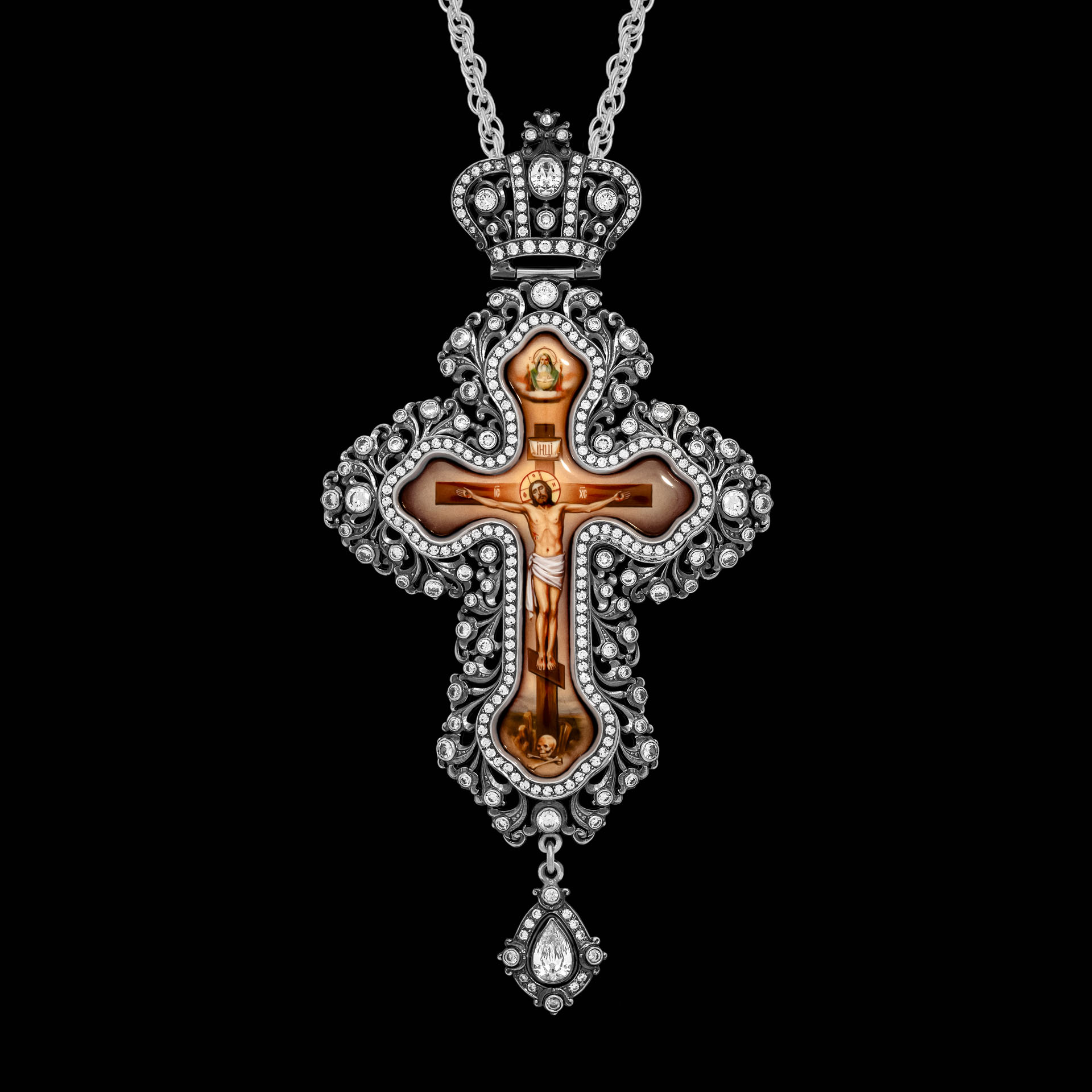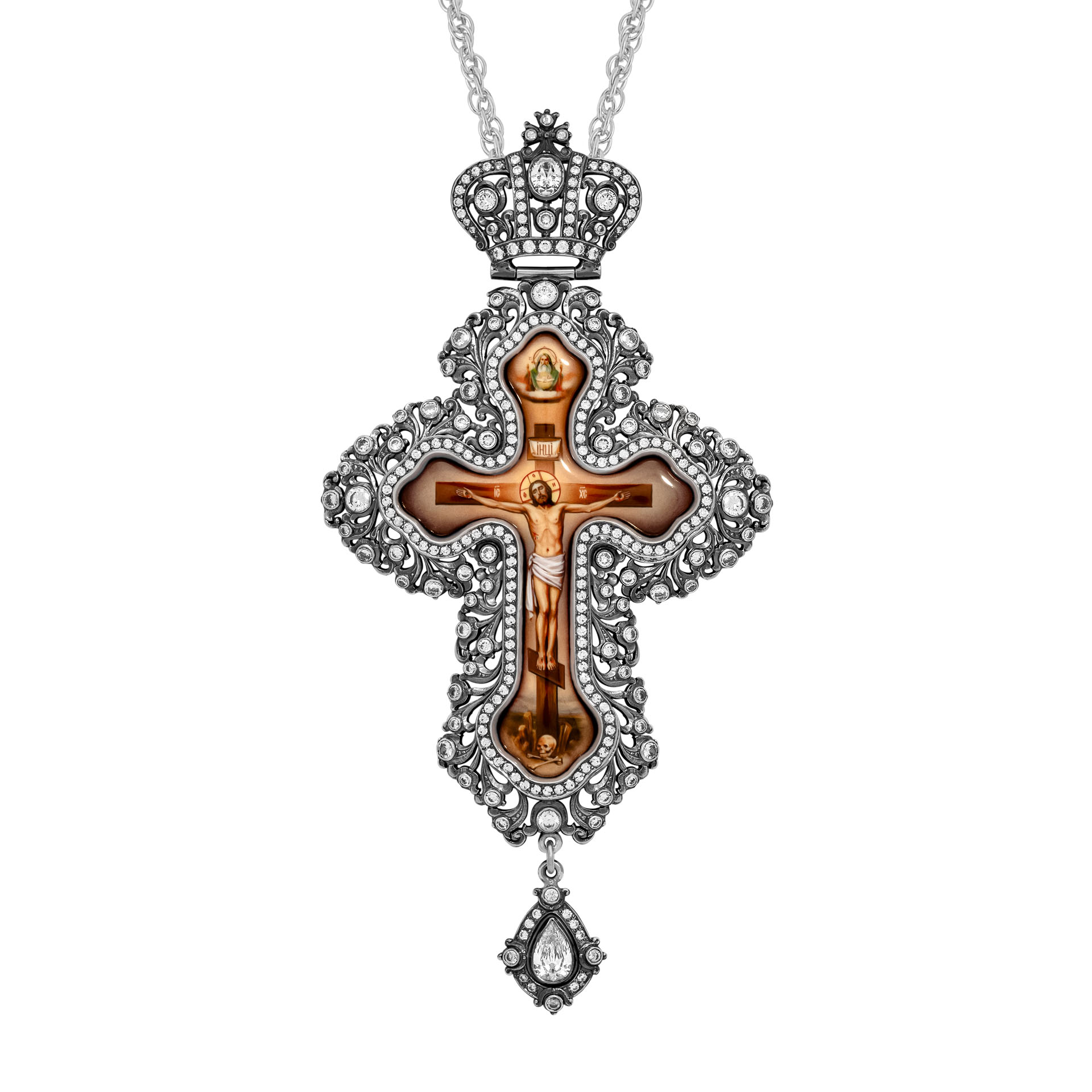 Крест наперсный №208 / Фианиты деколь / серебрение