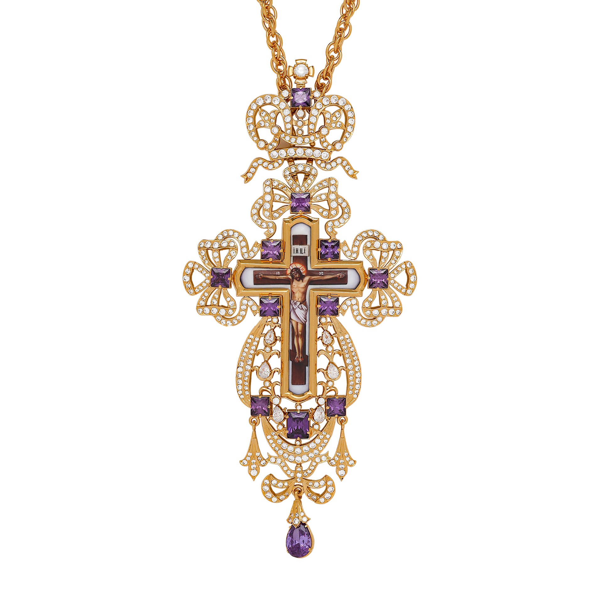 Крест наперсный №209 / Фианиты деколь / золочение
