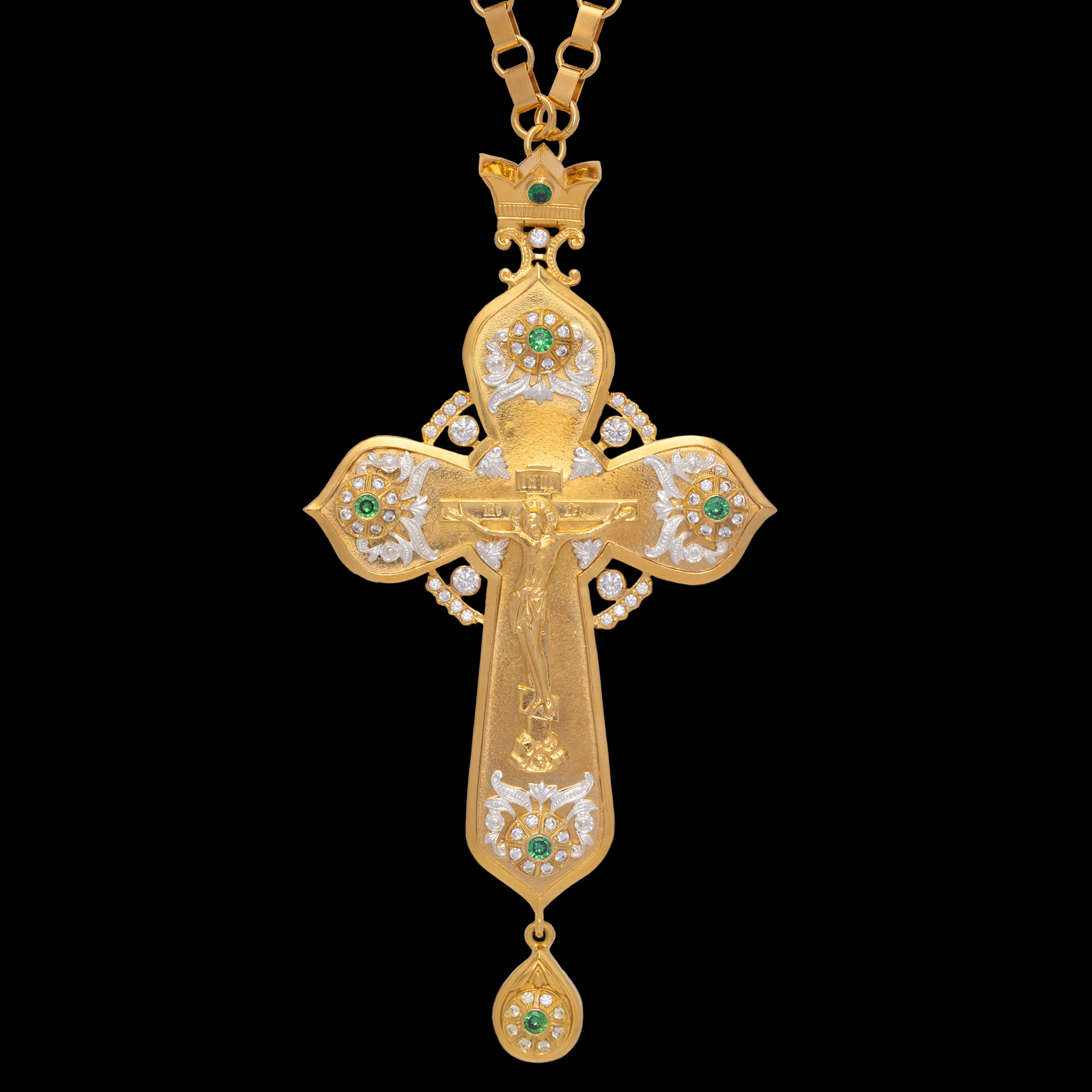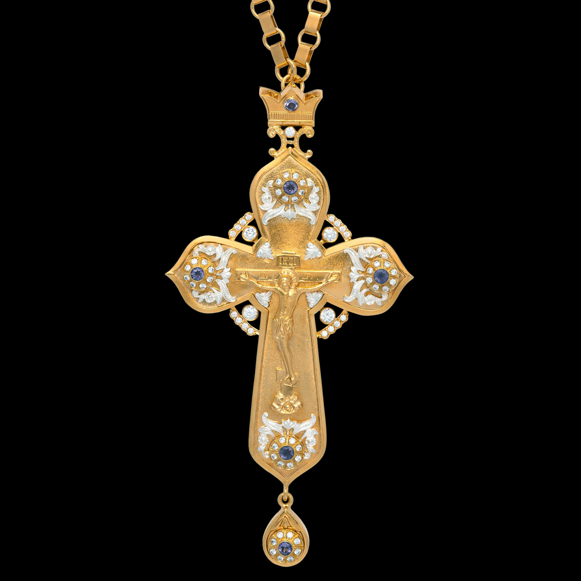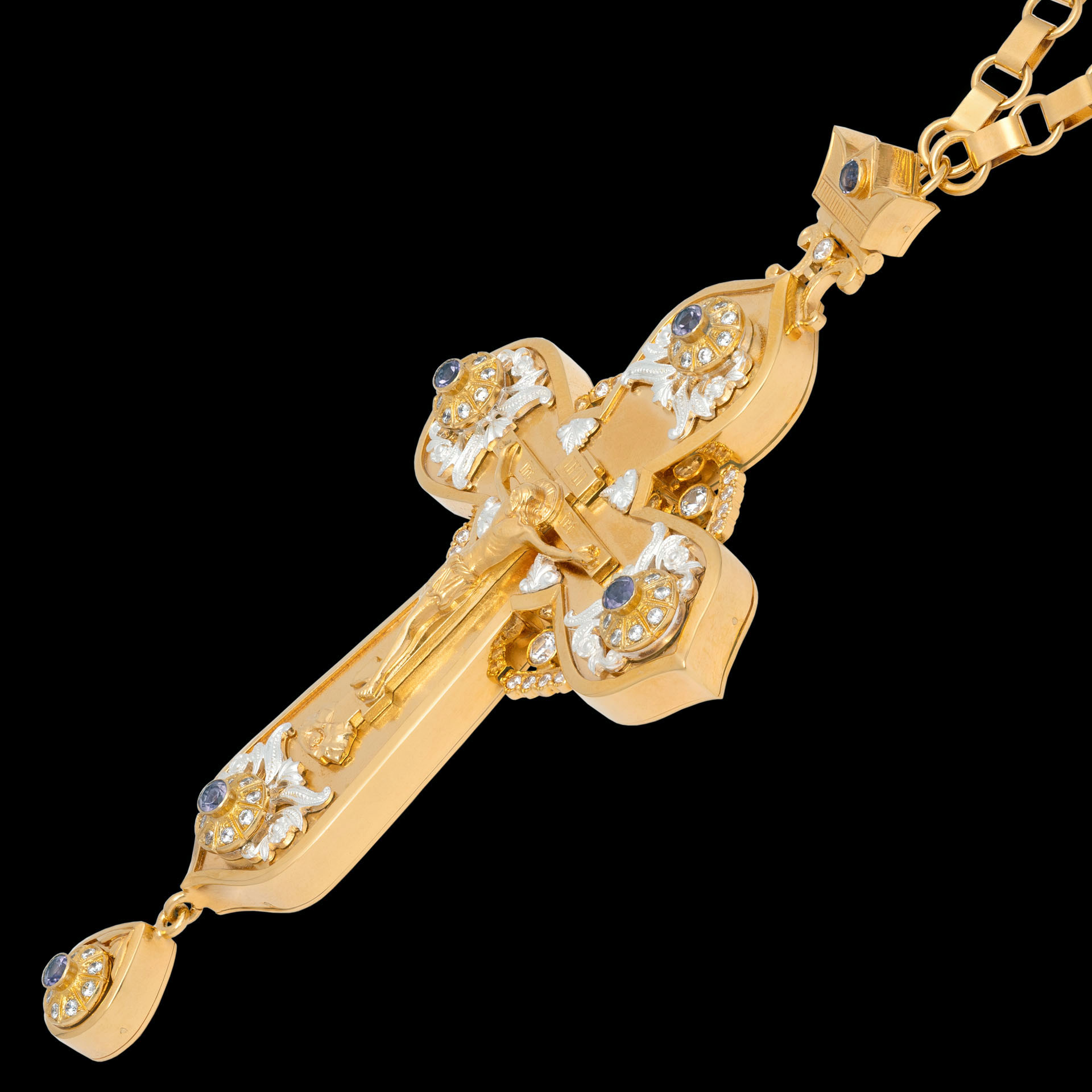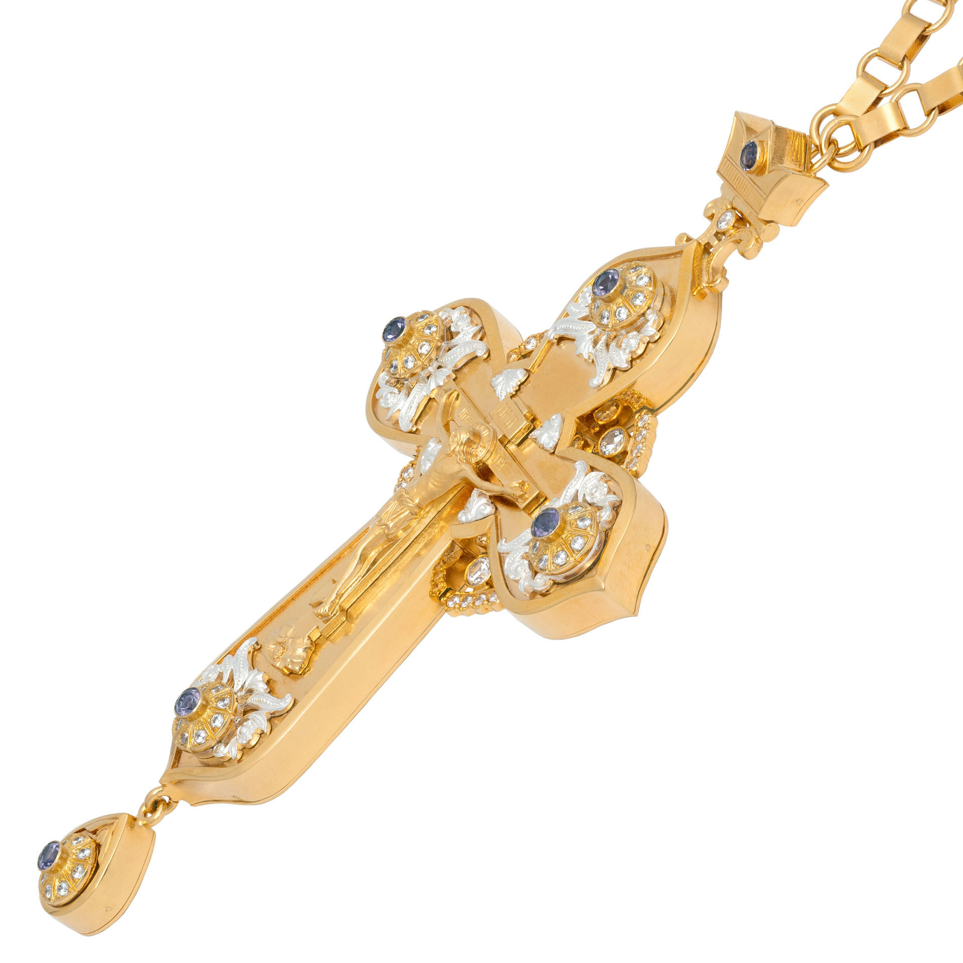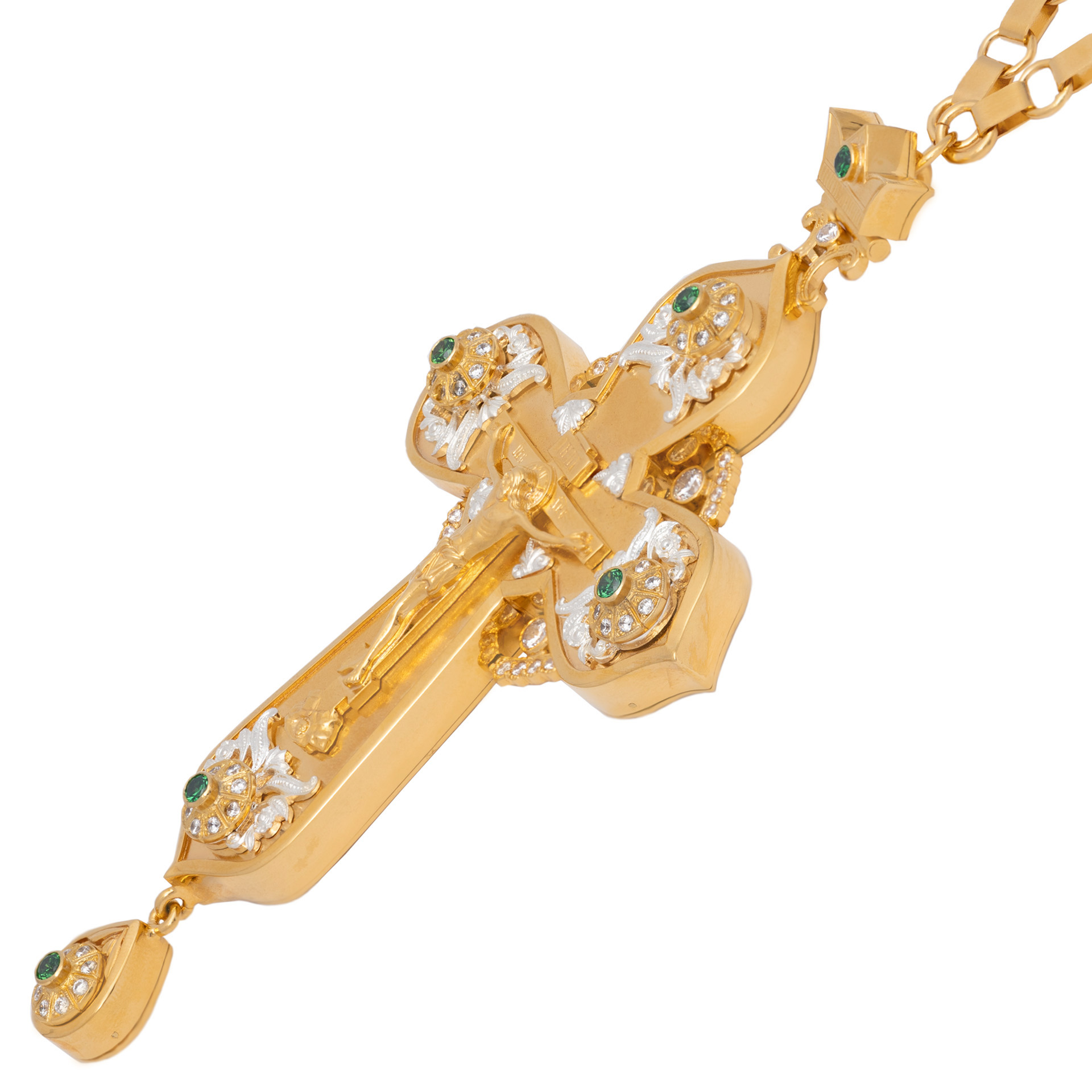 Крест наперсный №216 / Фианиты литьевое распятие / золочение, серебрение