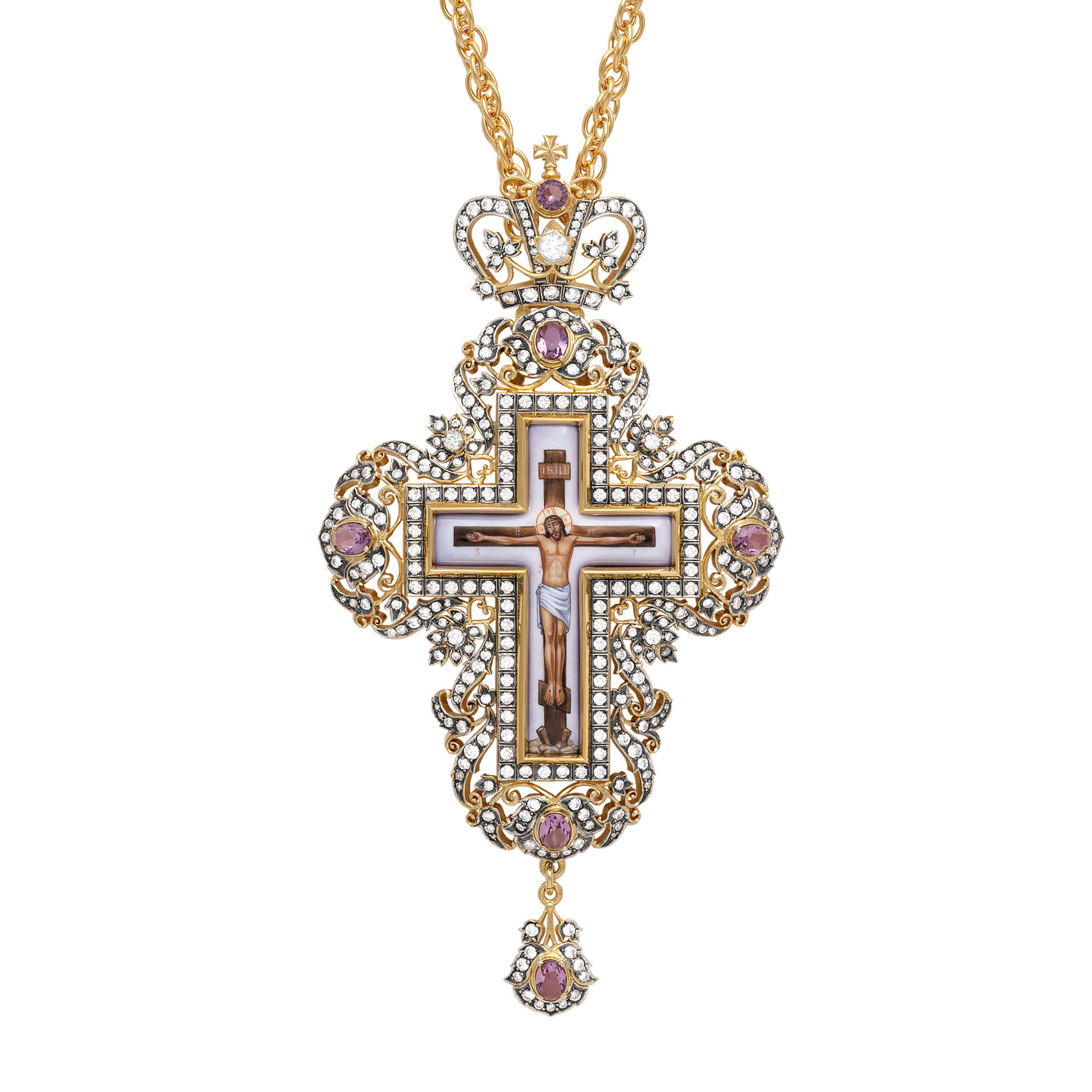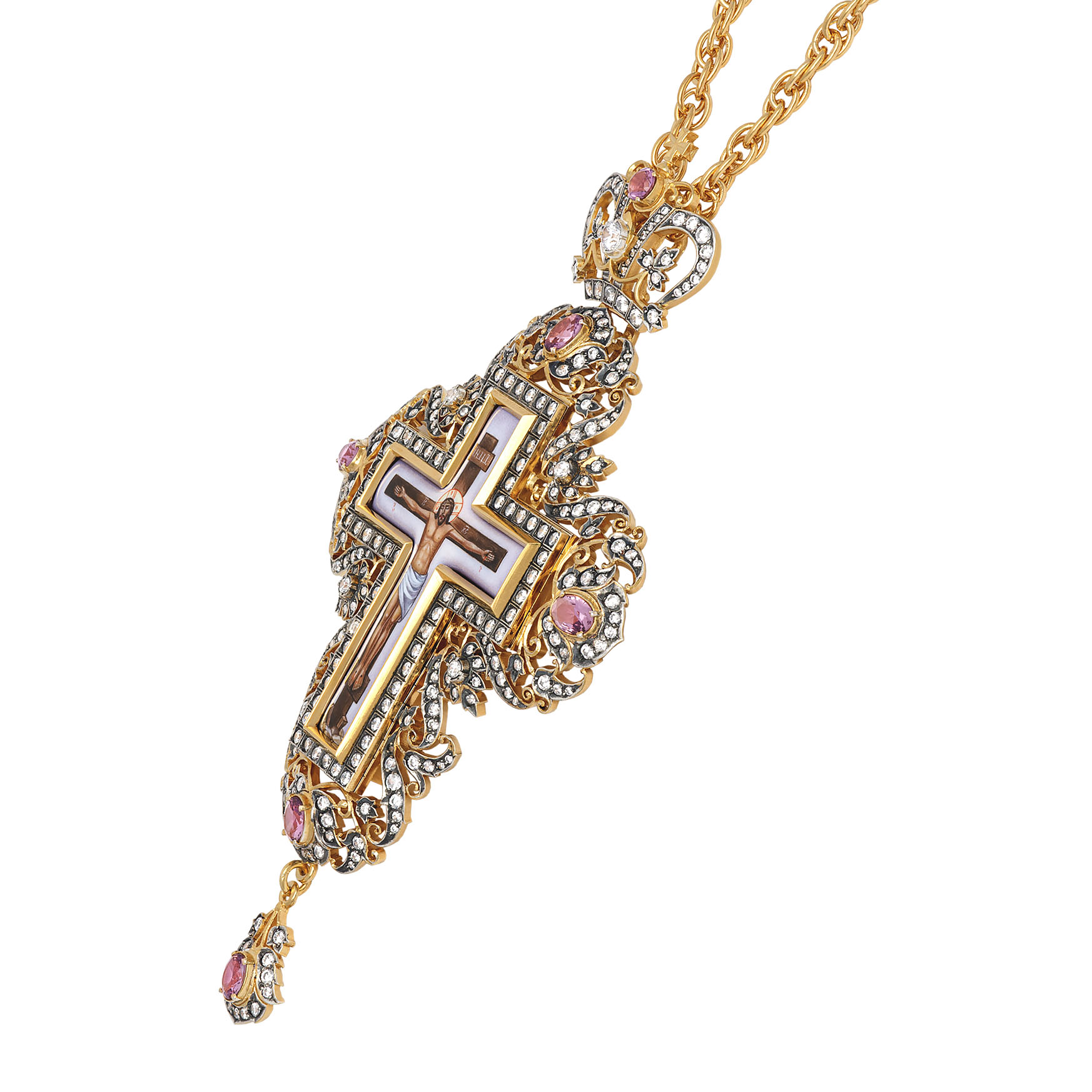 Крест наперсный №222 / Фианиты / золочение / серебро (УИН)