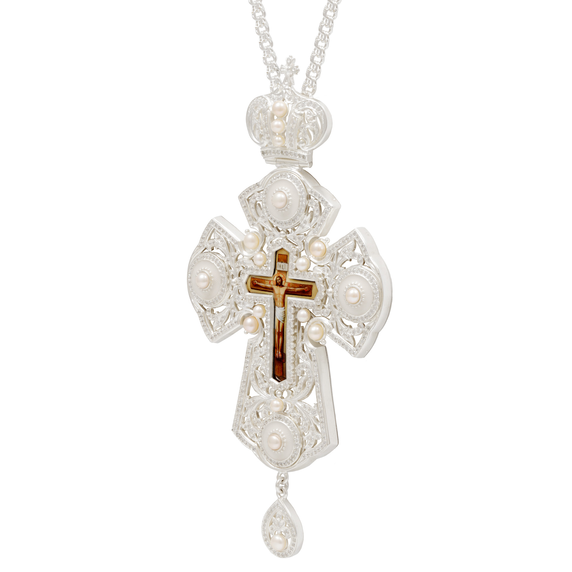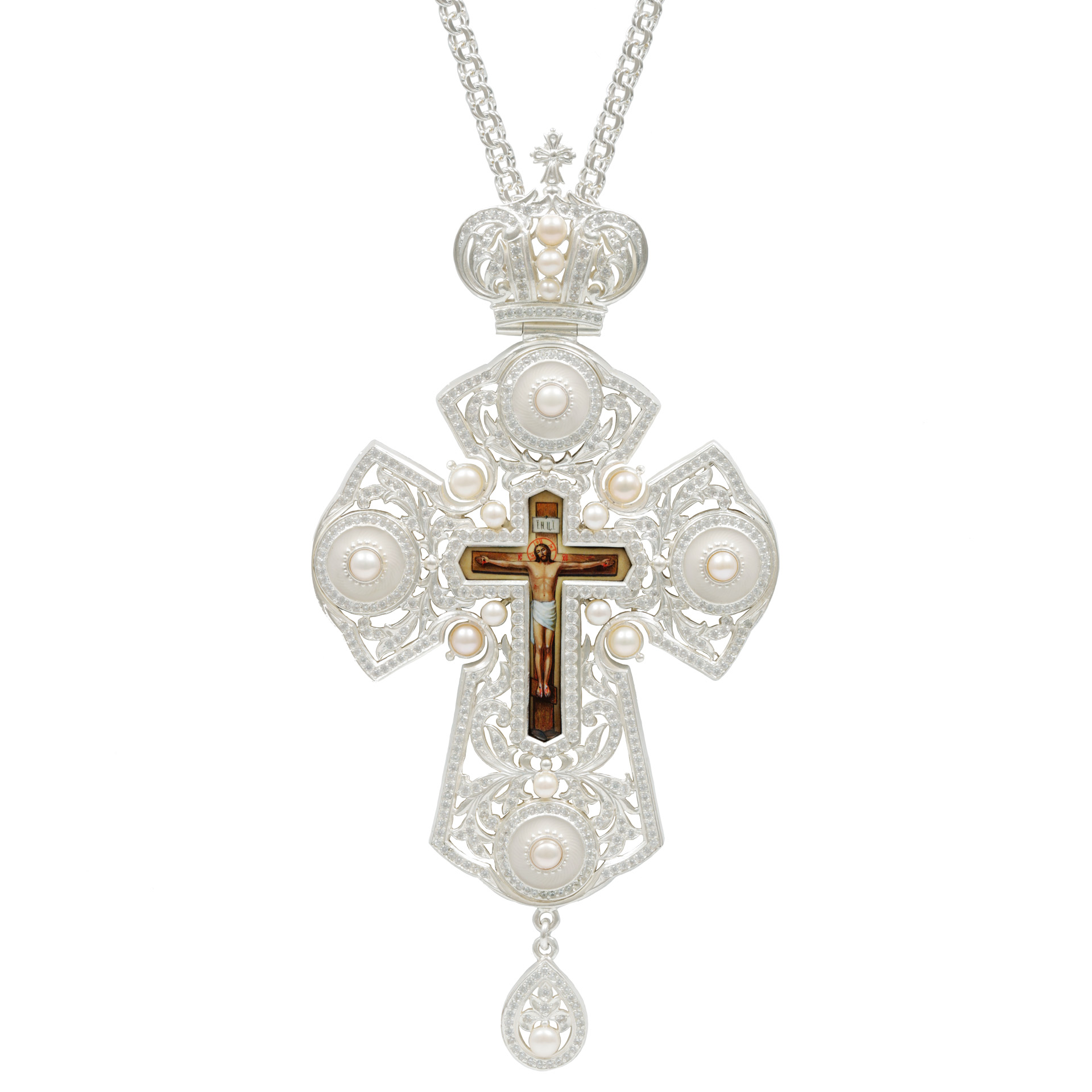 Крест наперсный №224 / Фианиты финифть, эмаль серебро (УИН)