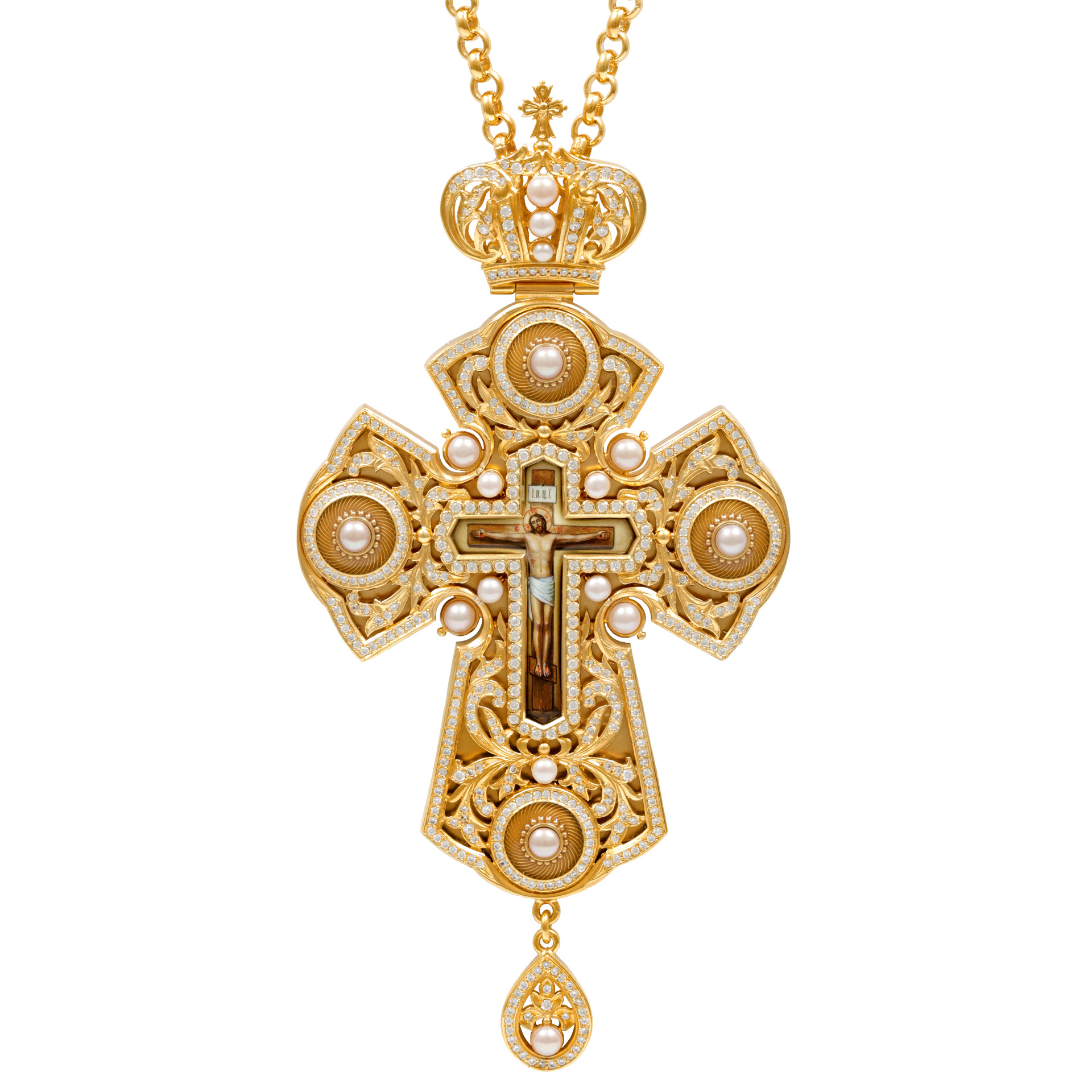 Крест наперсный №224 / Фианиты финифть, эмаль / золочение