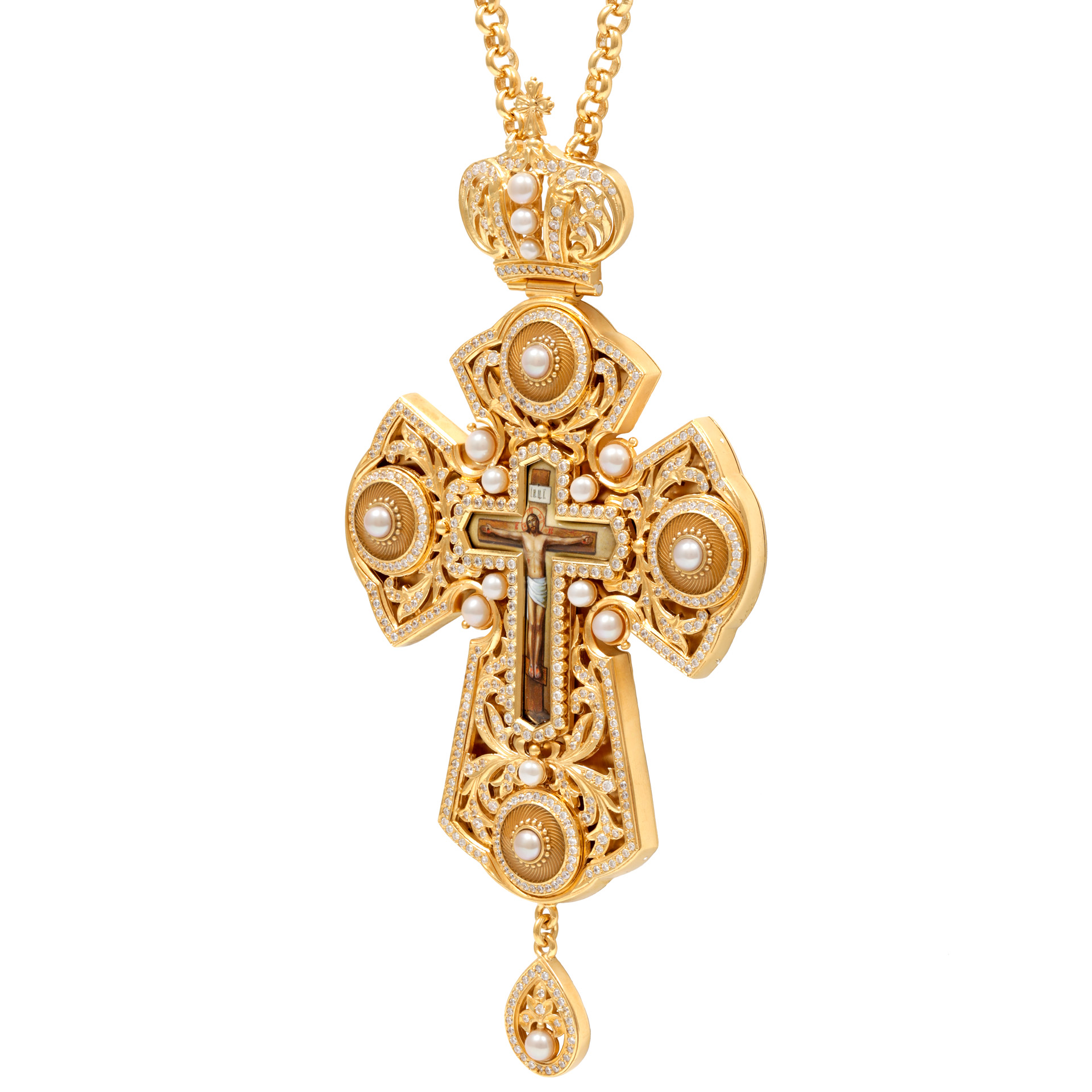 Крест наперсный №224 / Фианиты финифть, эмаль / золочение / серебро (УИН)
