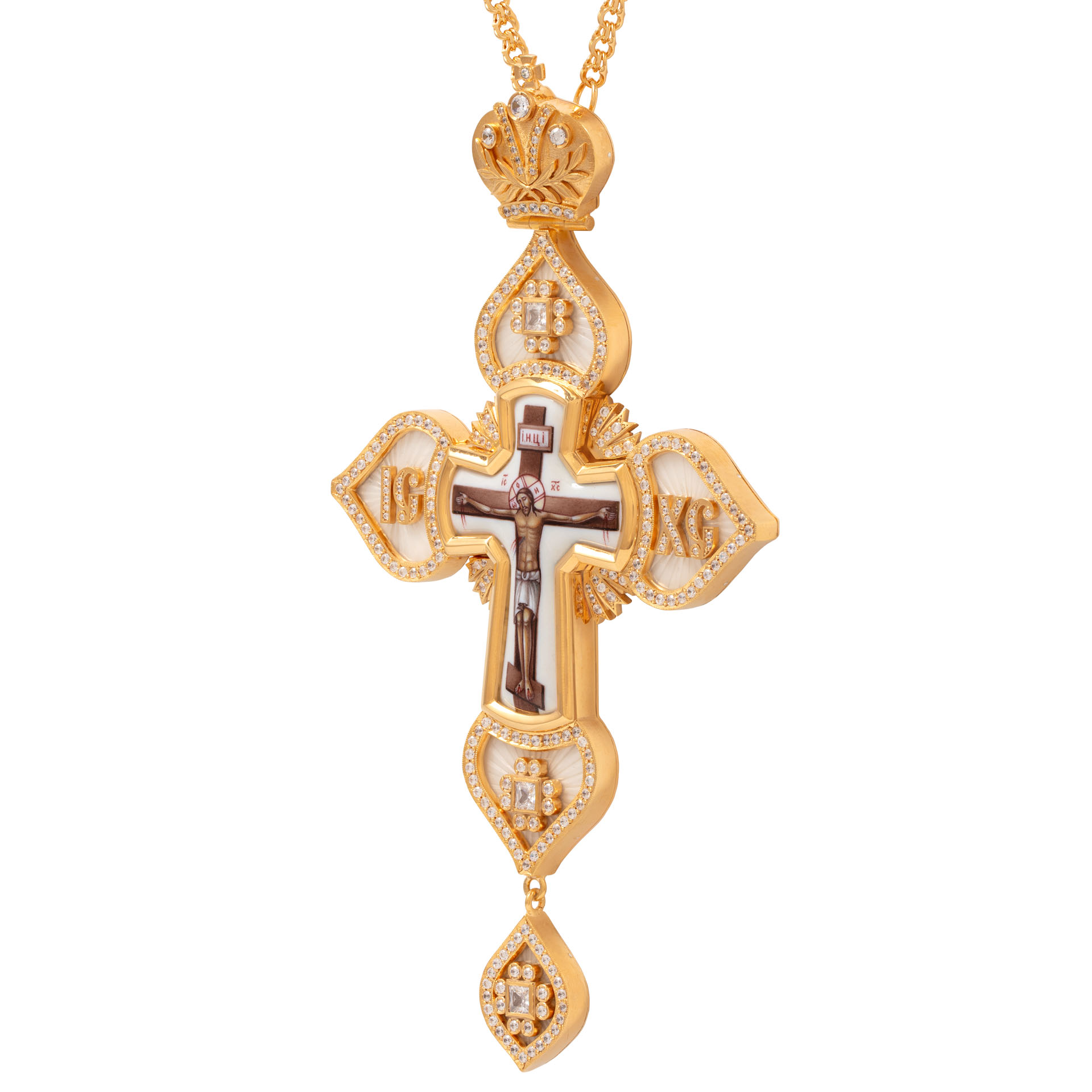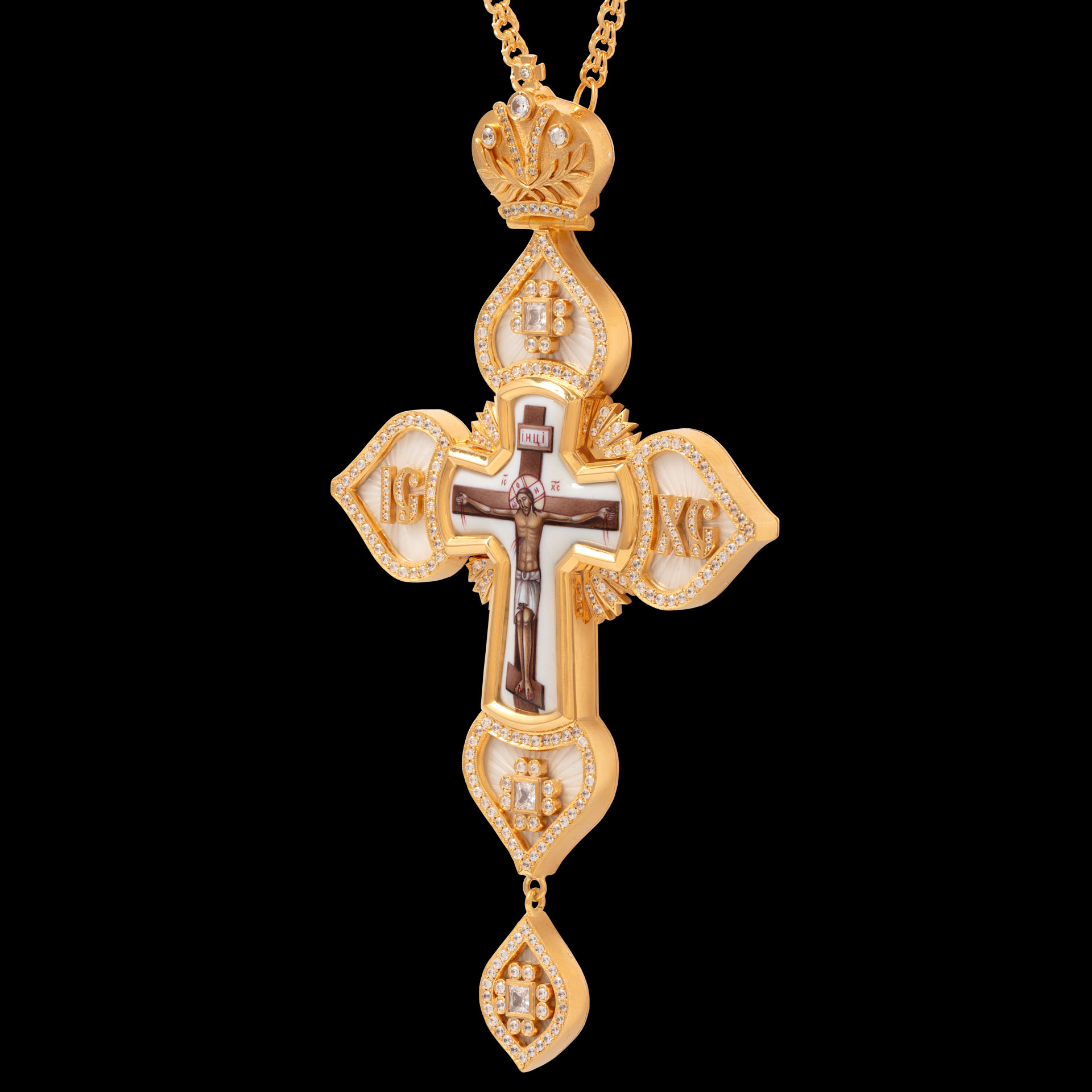 Крест наперсный №230 / Фианиты финифть, эмаль / золочение / серебро (УИН)