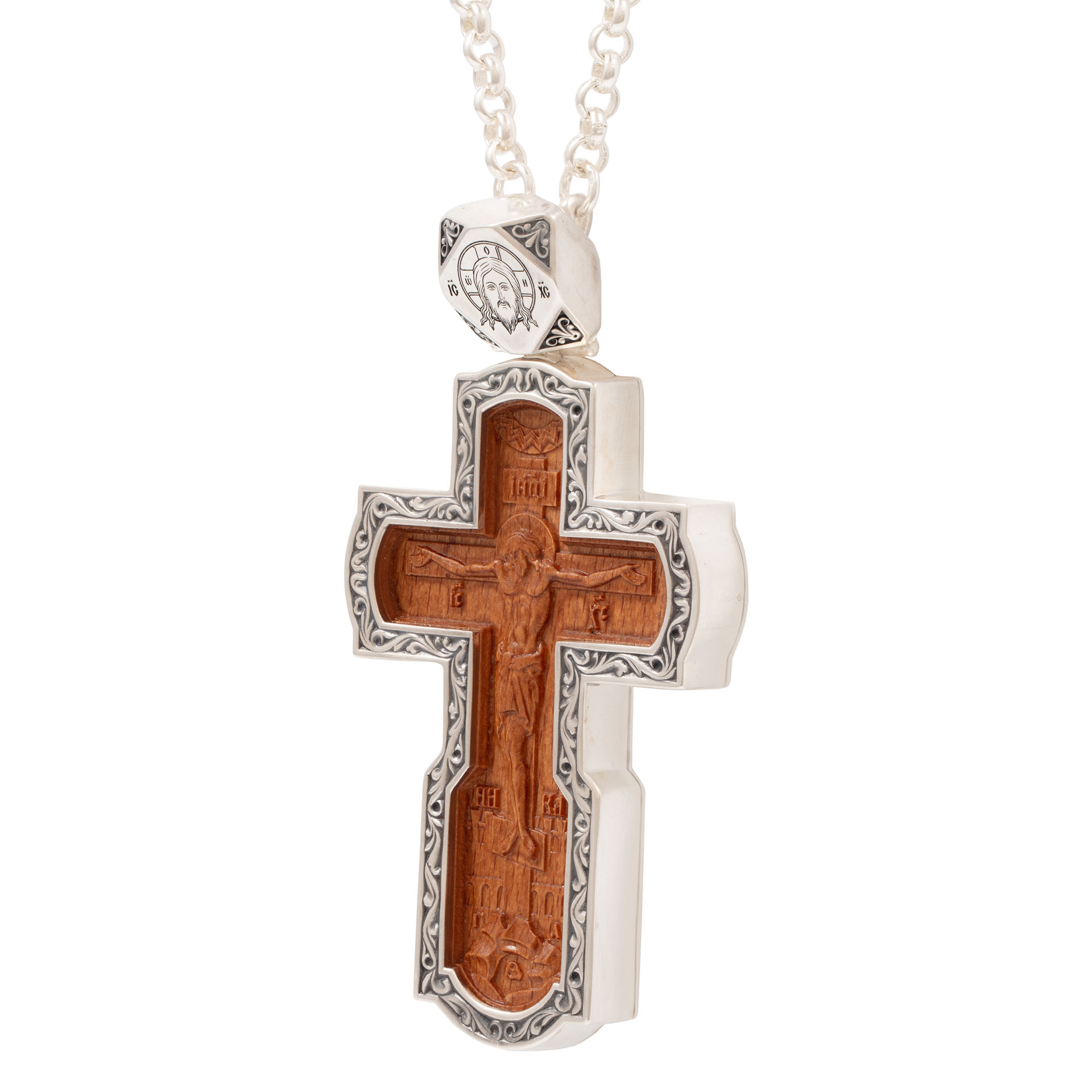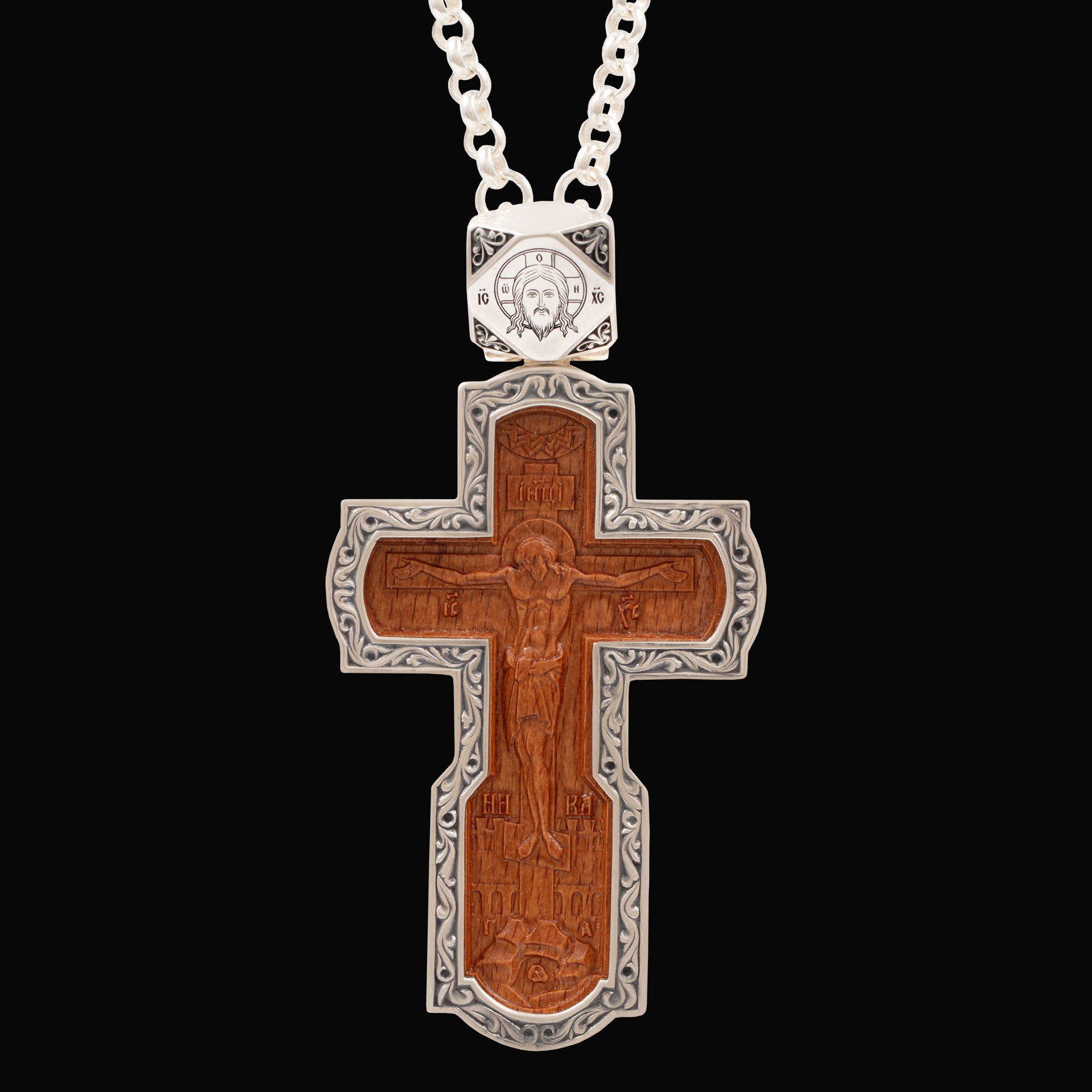 Крест наперсный №62 серебро деревянная вставка (УИН)