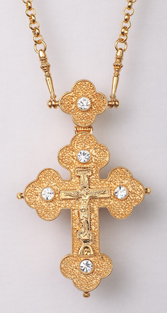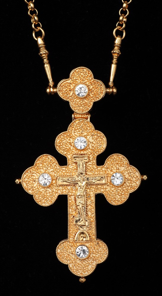 Крест наперсный №95 / золочение / литьевое распятие серебро (УИН)