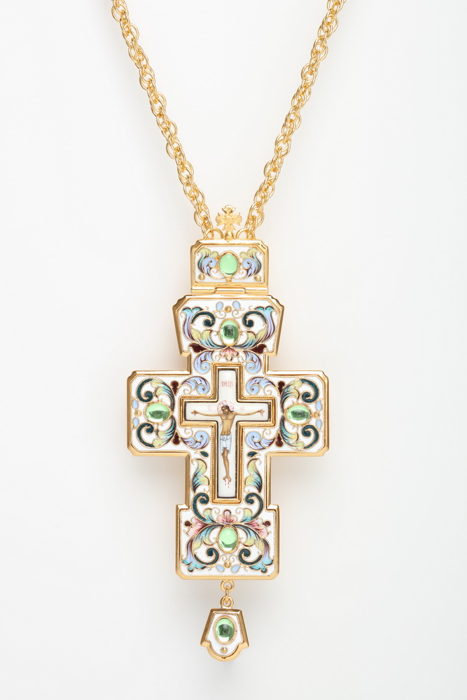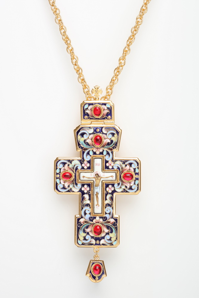 Крест наперсный филигрань №0026 одинарный рант финифть, роспись / золочение