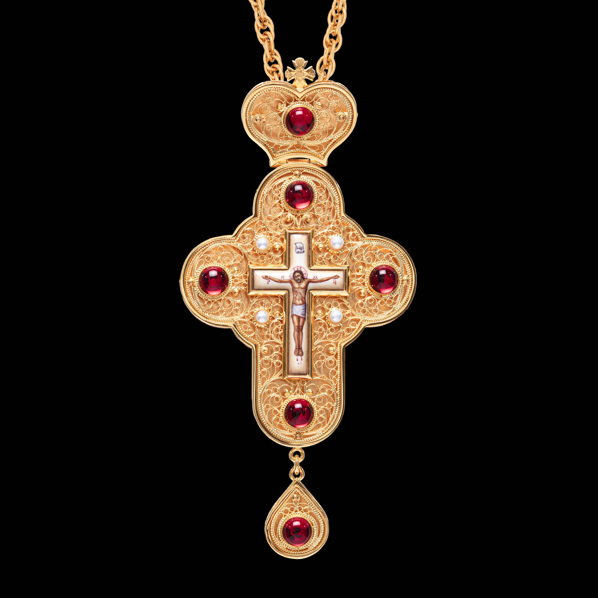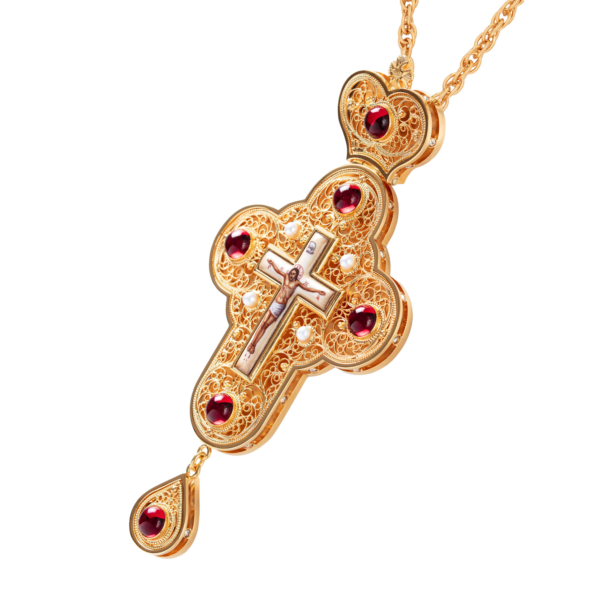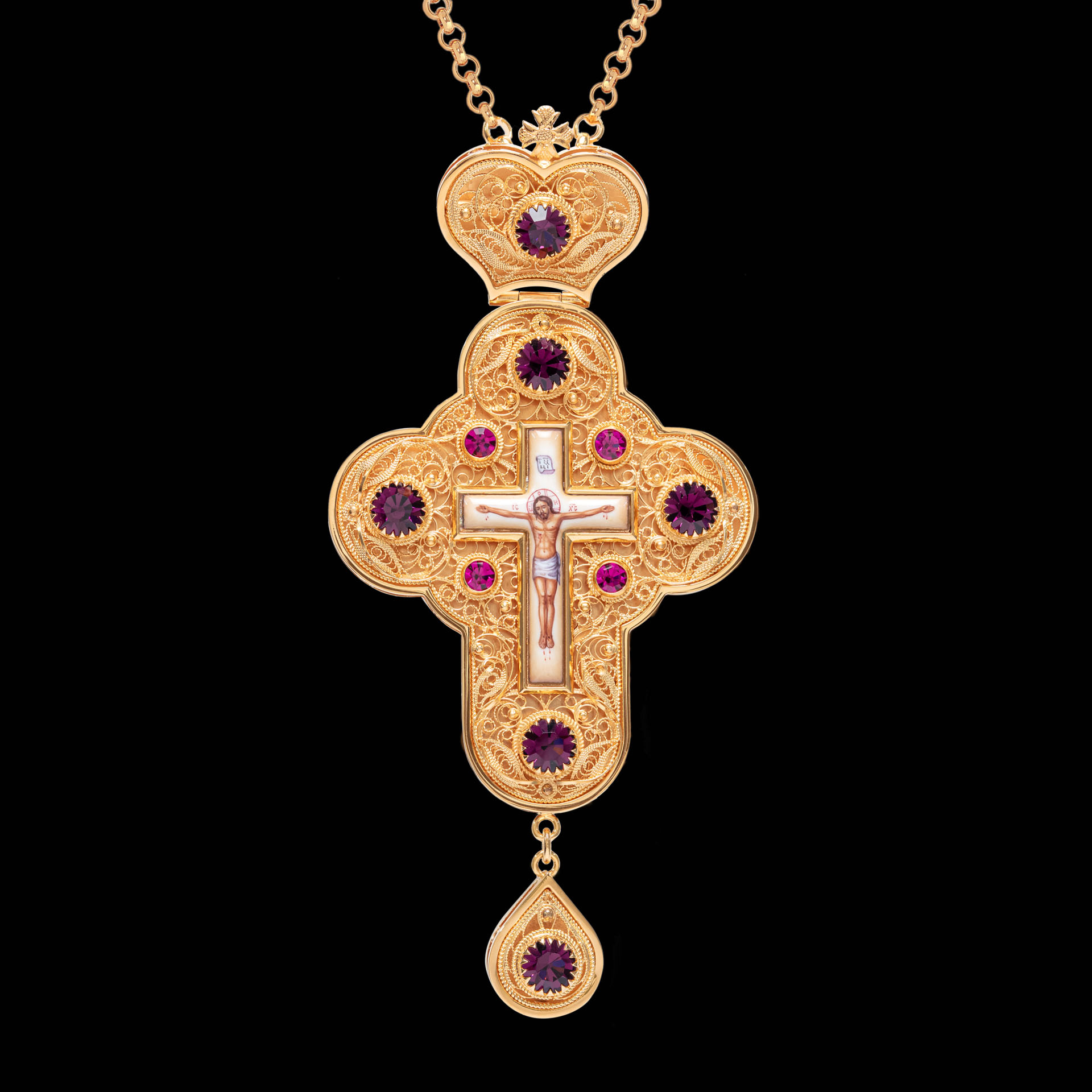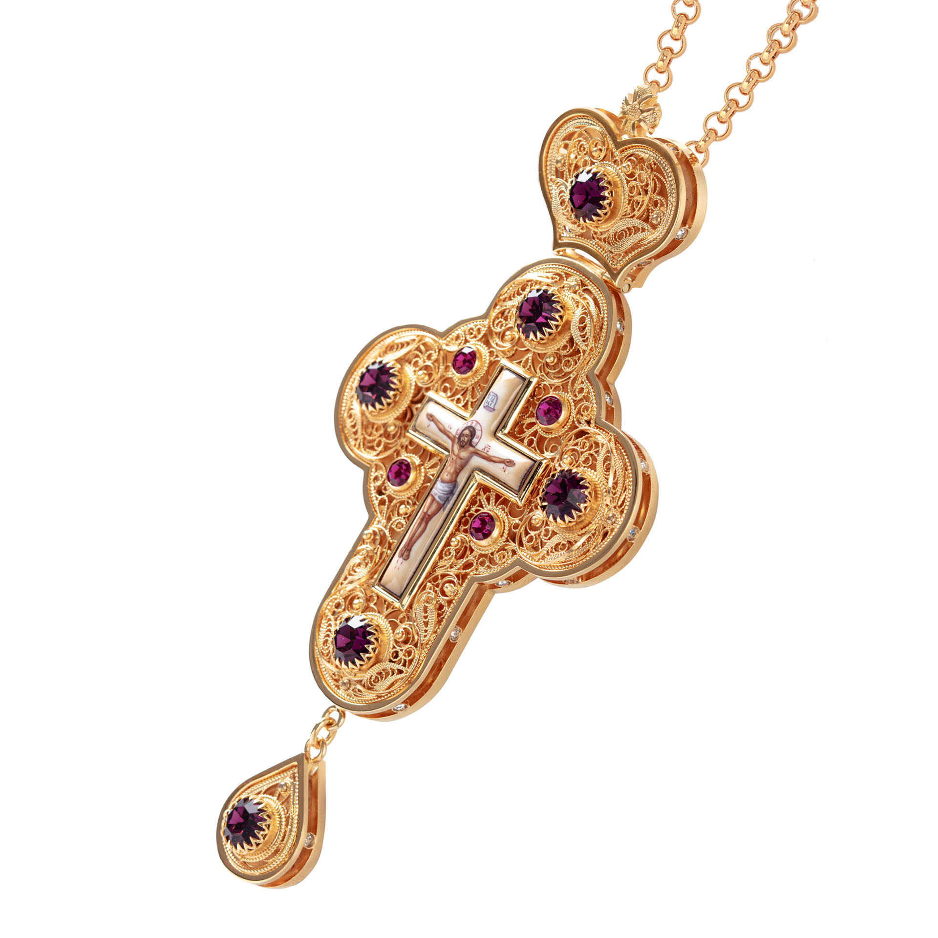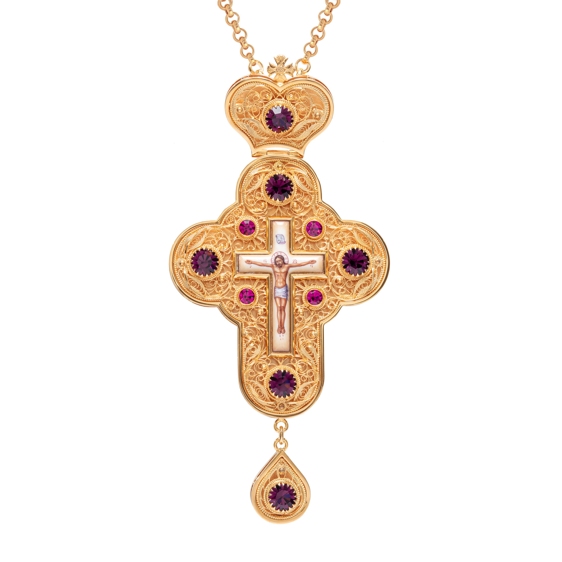 Крест наперсный филигрань №0045 двойной рант финифть / золочение