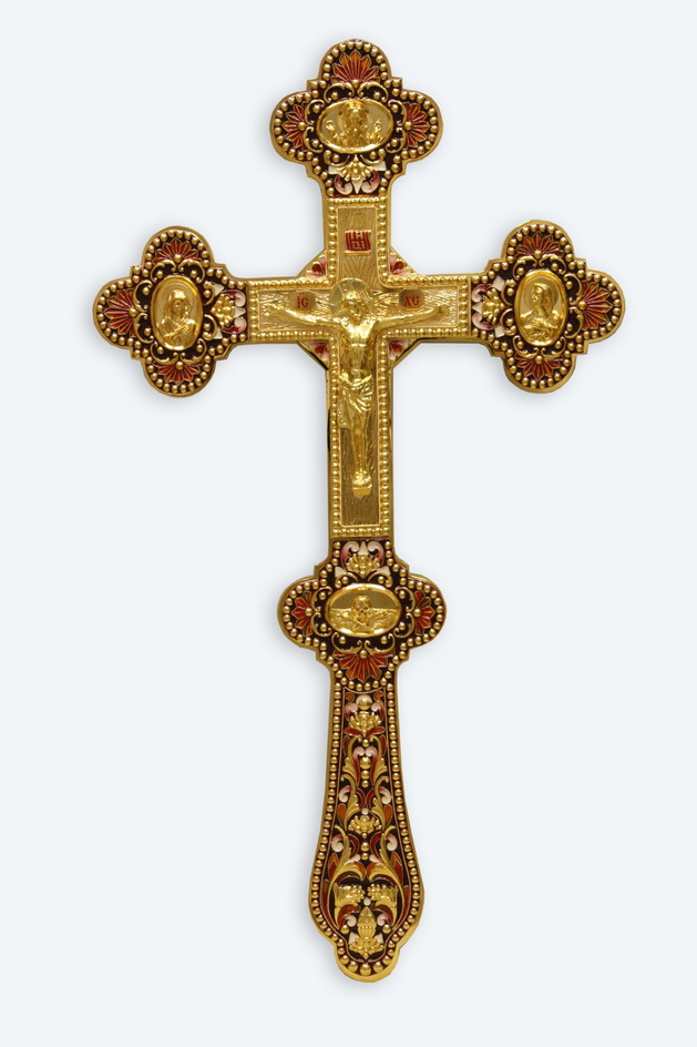 Крест напрестольный №1-3 сложный № 2а с г/пластическими накладками золочение {{variant.name}}