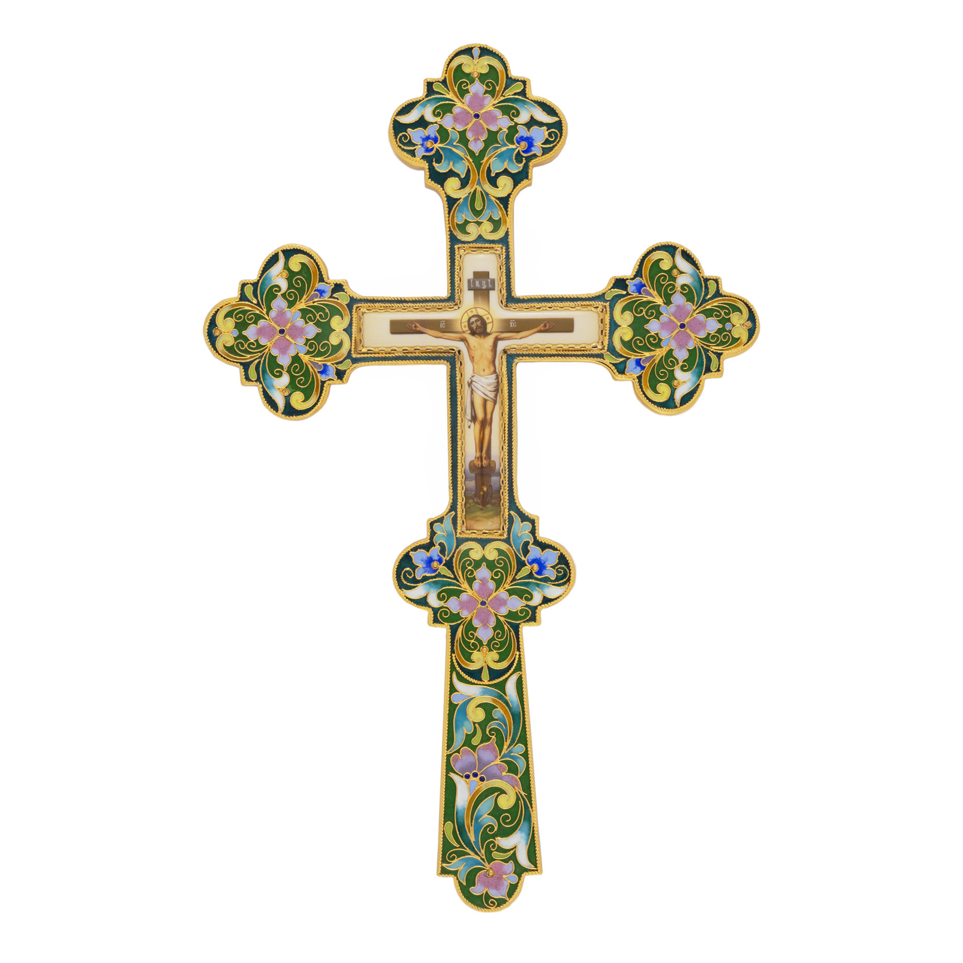 Крест напрестольный №18 деколь, филигрань, эмаль, лазерная гравировка / золочение