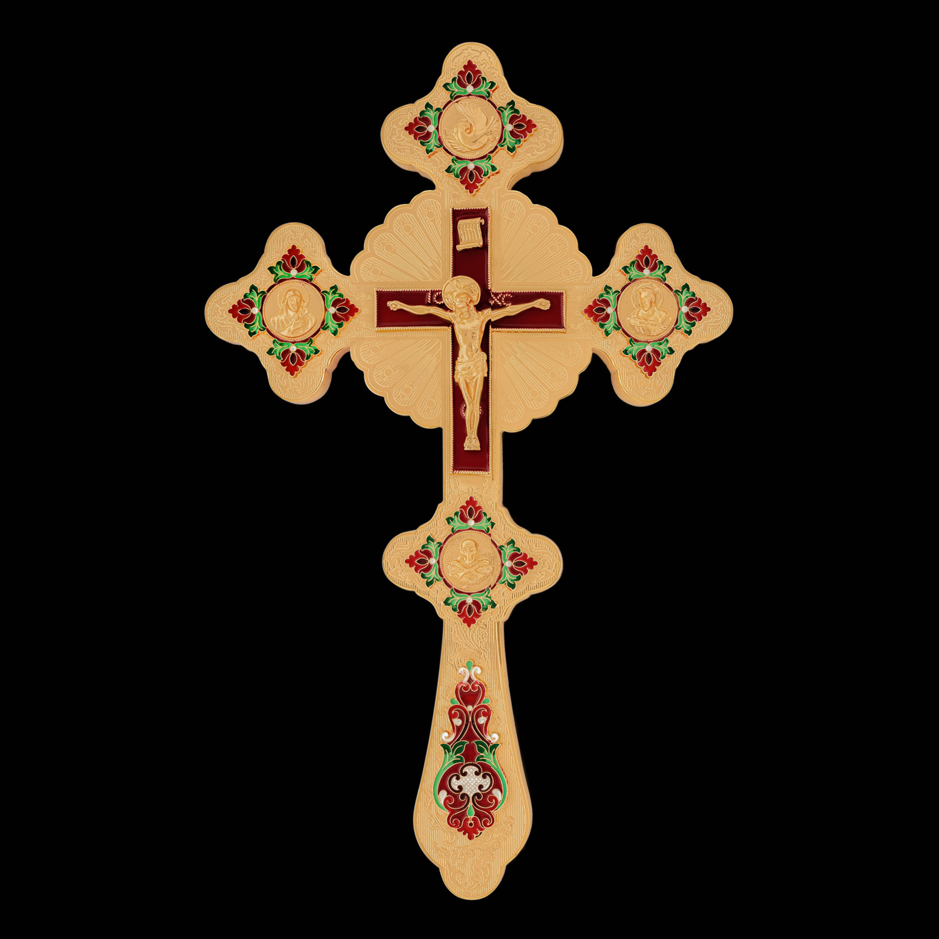 Крест напрестольный №5-1 фигурный золочение гальванопластика эмаль {{variant.name}}