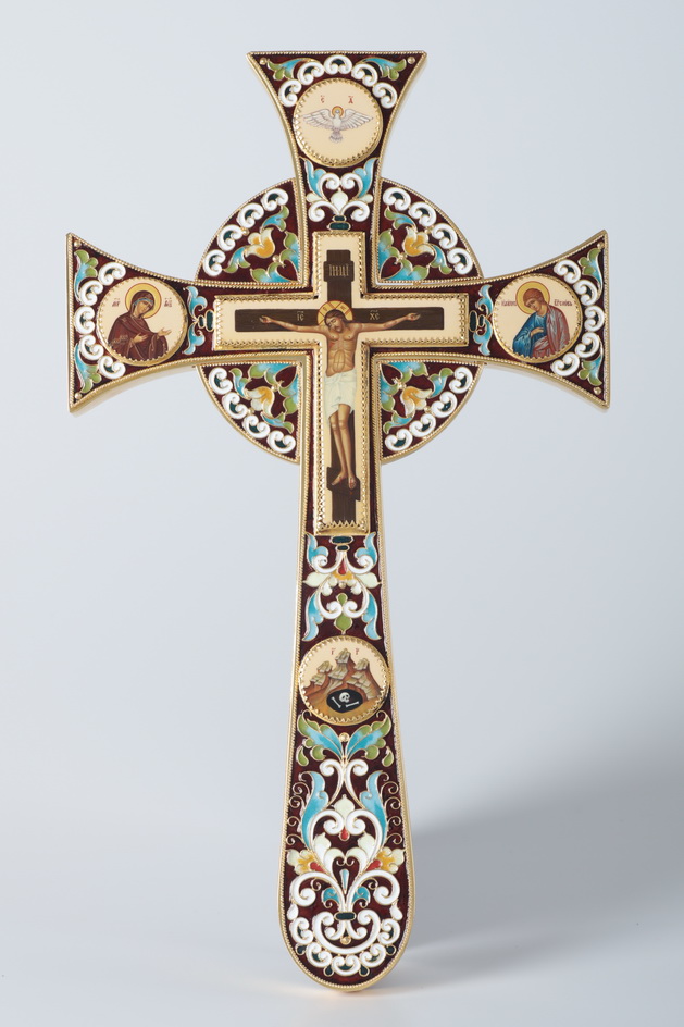 Крест напрестольный мальтийский 5-живописей, эмаль / золочение