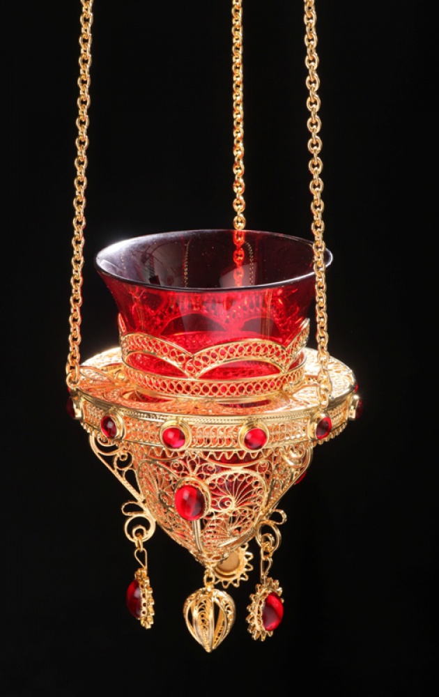 Стаканы из цветного хрусталя временно отсутствуют. Лампады можно изготовить только с прозрачным хрустальным стаканом либо со стаканом из окрашеного цветного стекла.