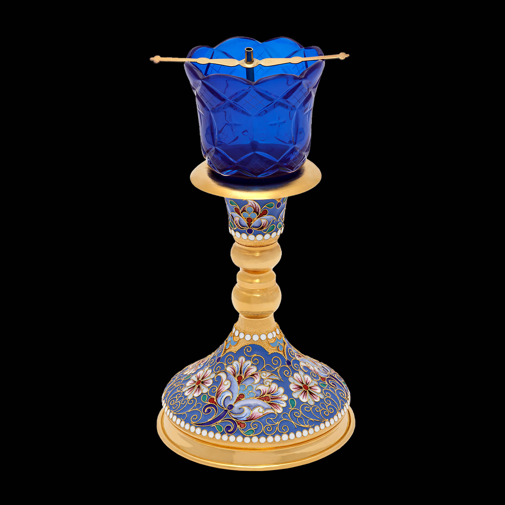 Стаканы из цветного хрусталя временно отсутствуют. Лампады можно изготовить только с прозрачным хрустальным стаканом либо со стаканом из окрашеного цветного стекла.