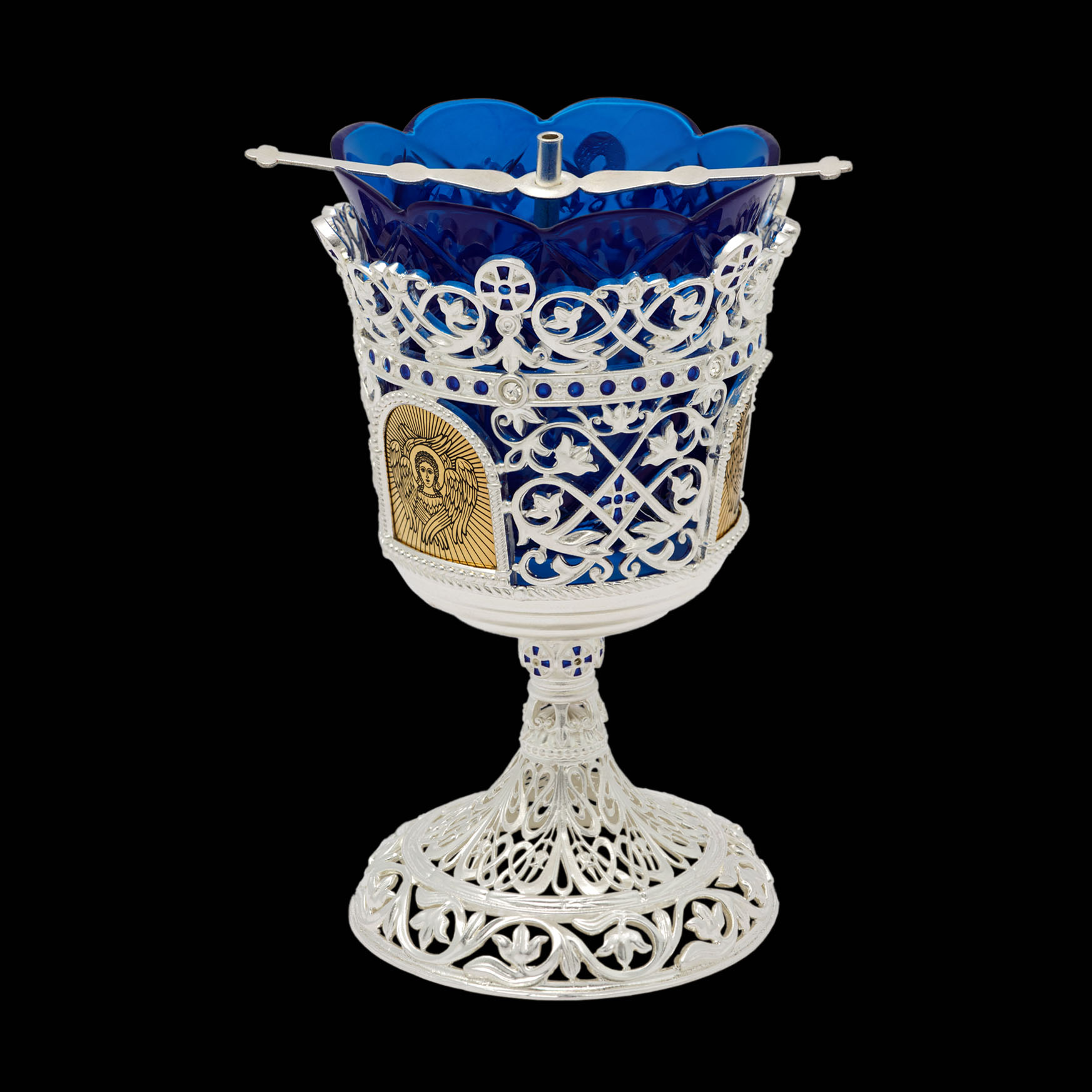 Лампада напрестольная №41 литьевая, эмаль / серебрение, золочение